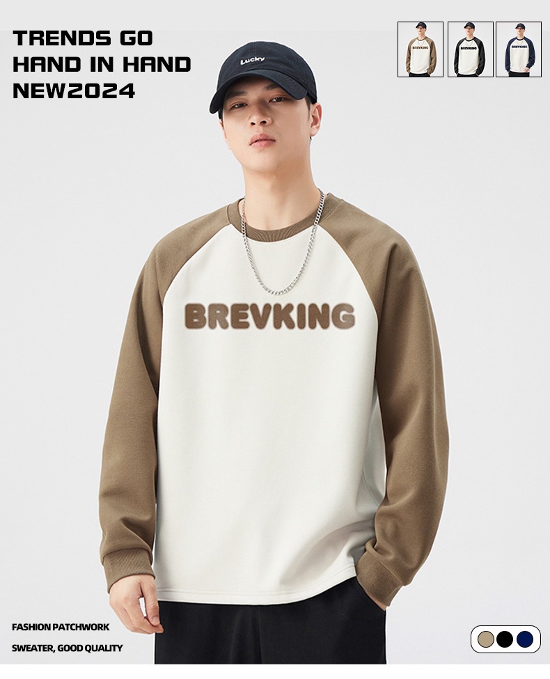 라운드 넥 스웨터 남성 봄과 가을 2024 새로운 느슨한 청소년 바닥 셔츠 가을과 겨울 긴 소매 재킷 도매스토어 가기
