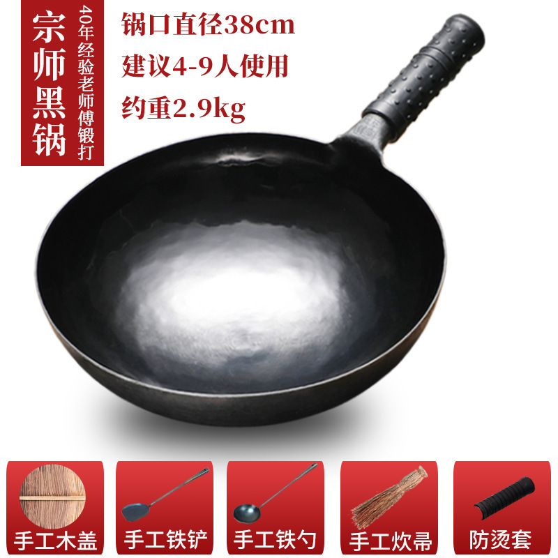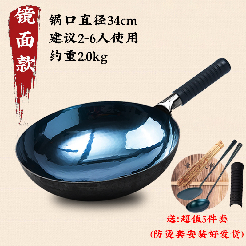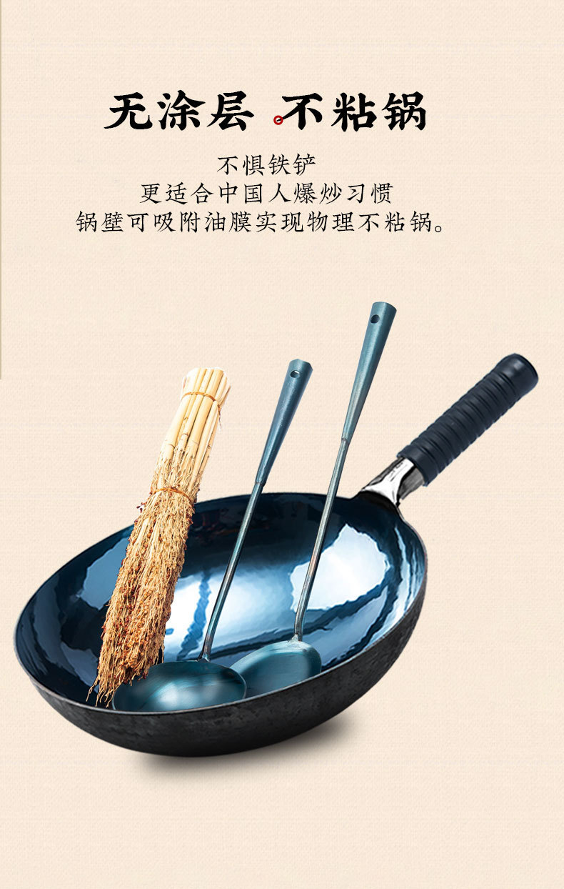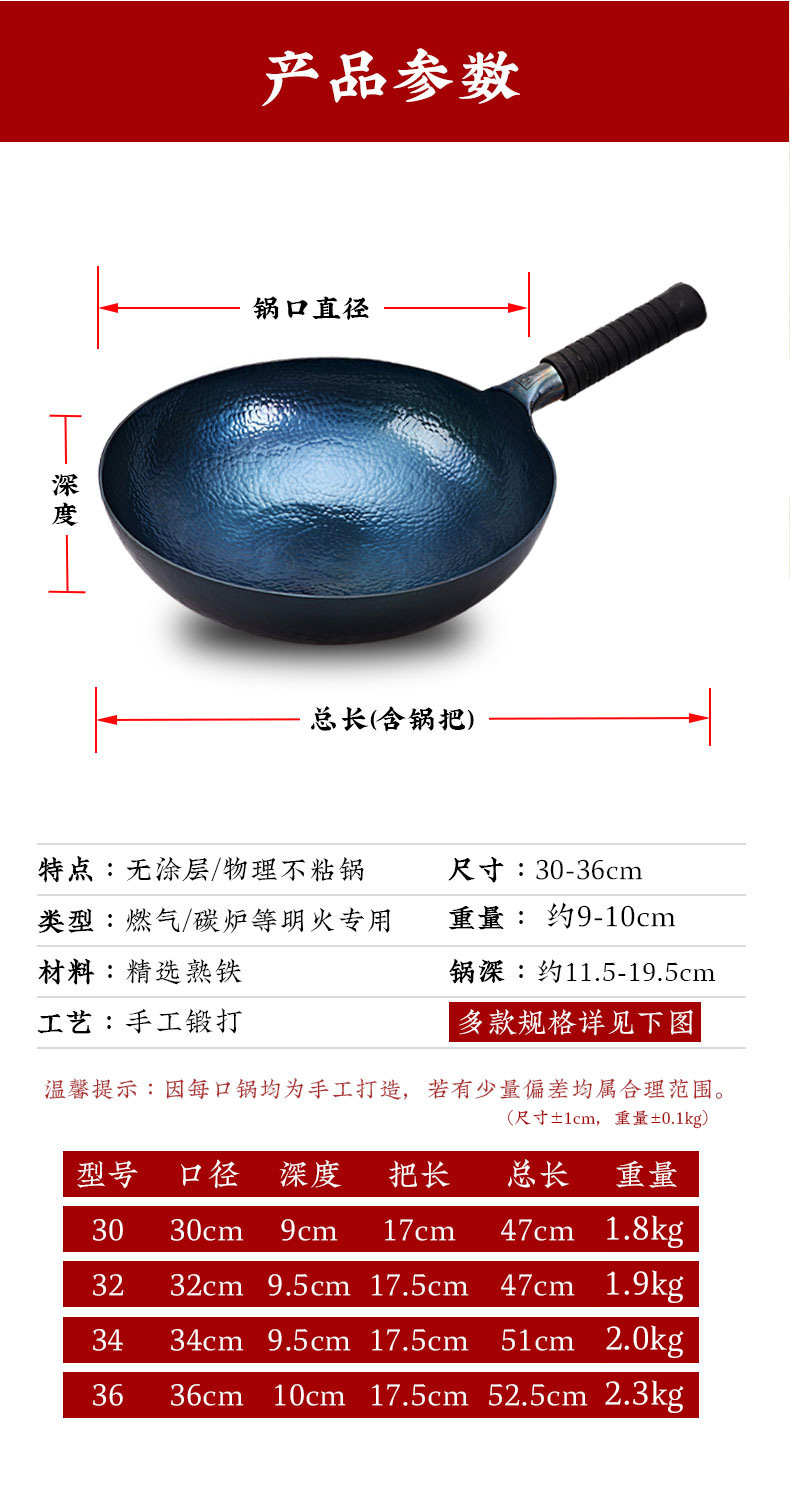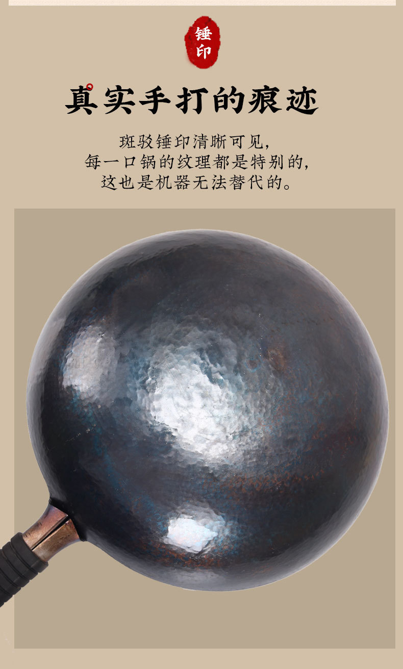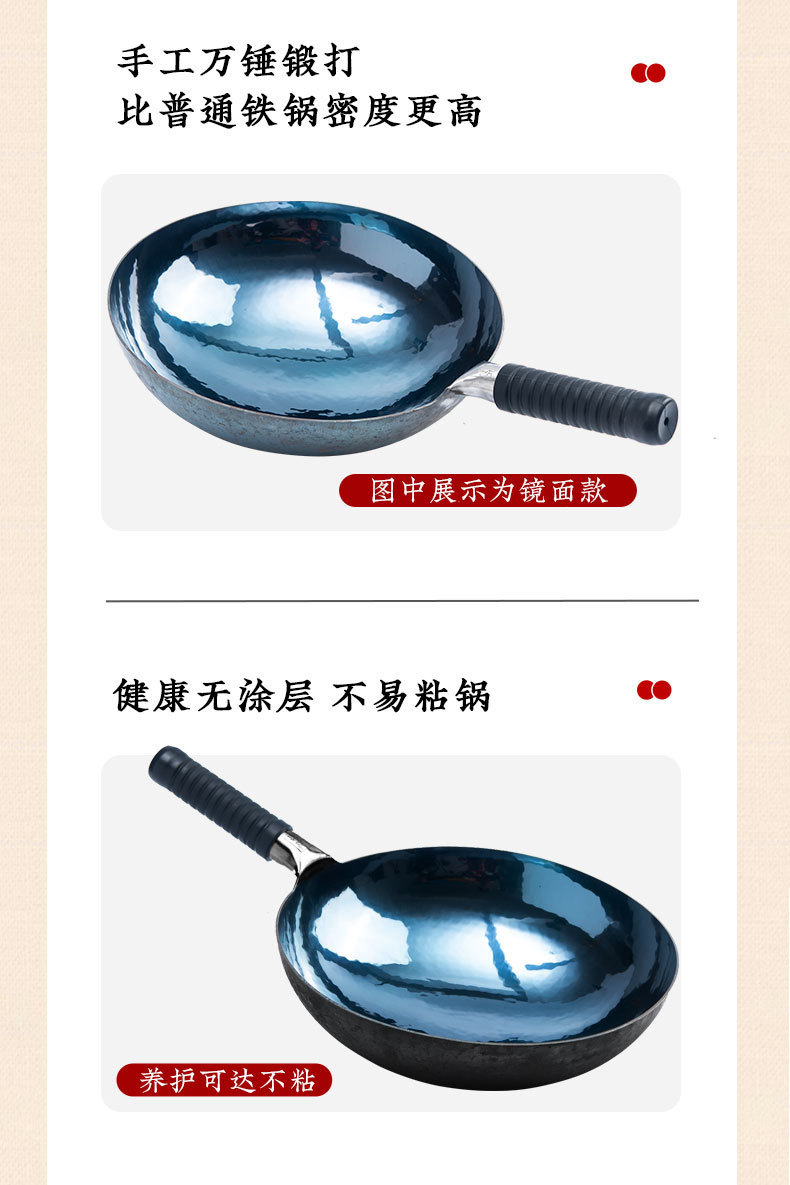 Zhangqiu Wok 수제 철 냄비 공식 플래그십 전통적인 구식 철 냄비 가정용 코팅되지 않은 스틱 팬