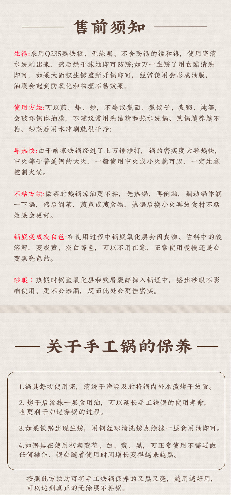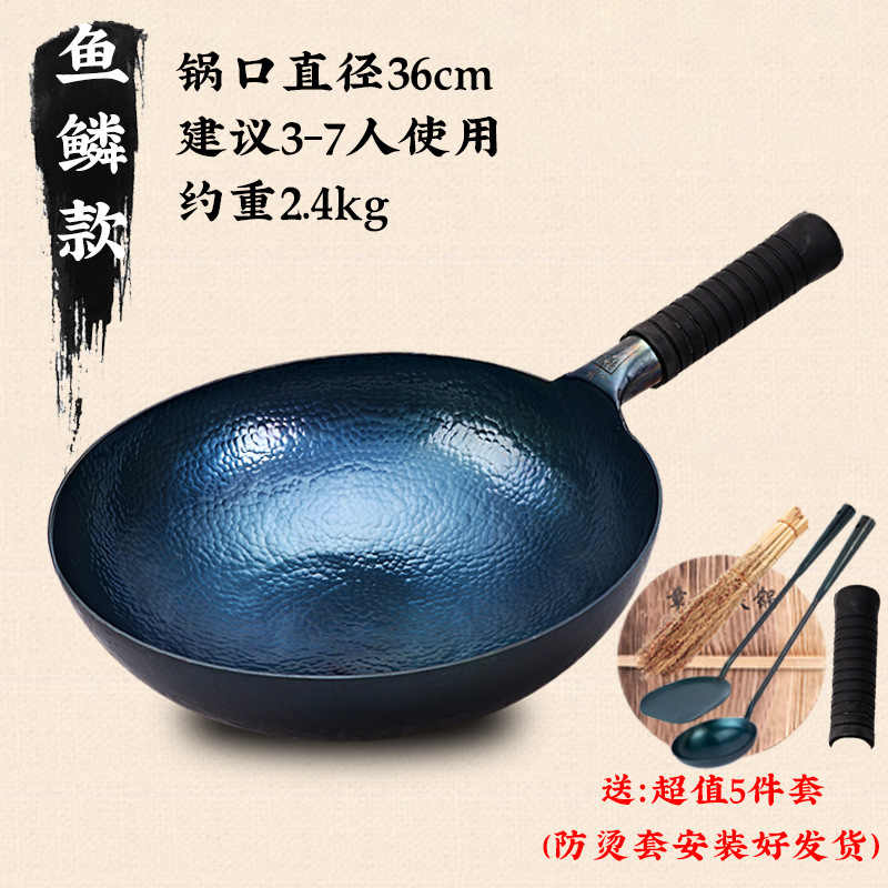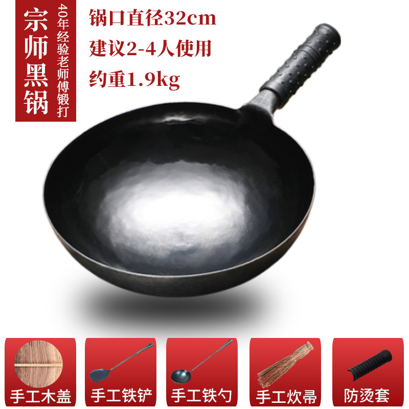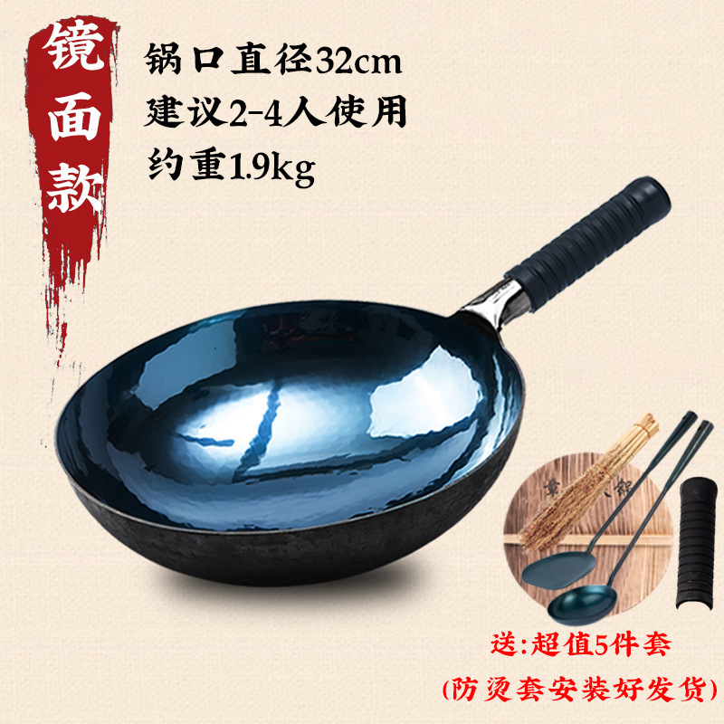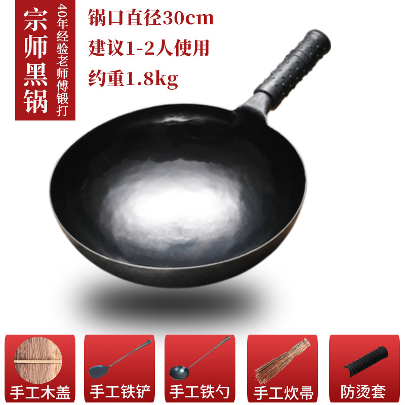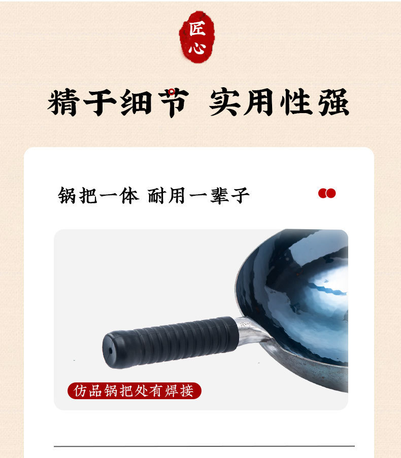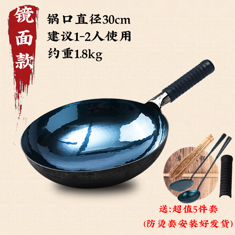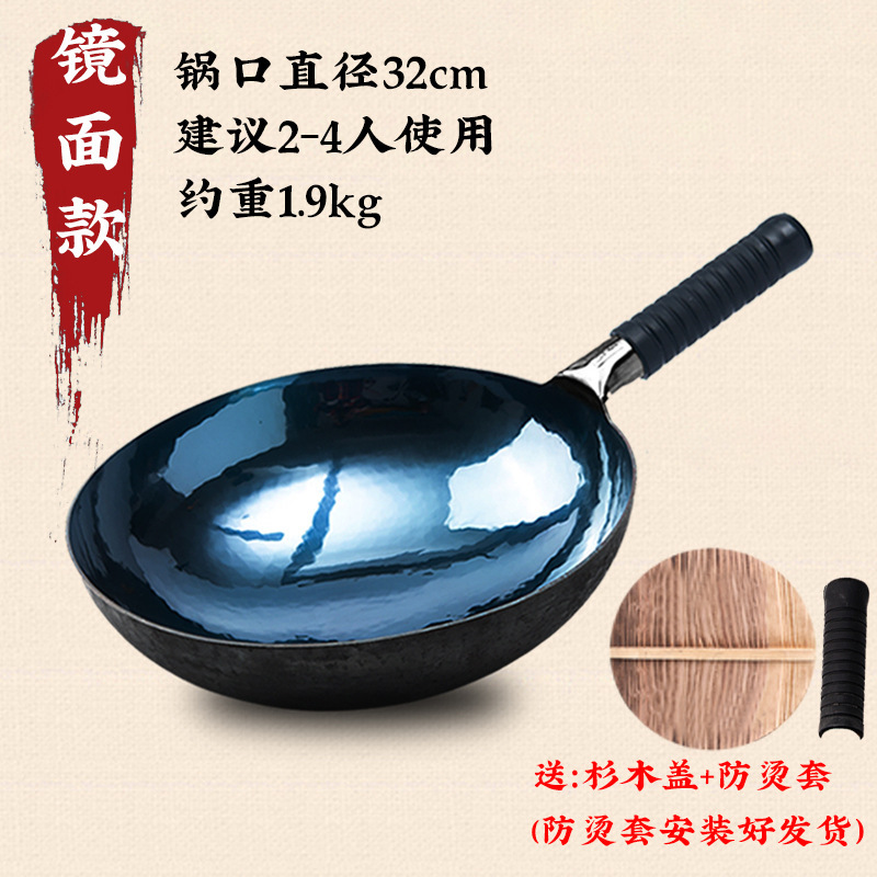Zhangqiu Wok 수제 철 냄비 공식 플래그십 전통적인 구식 철 냄비 가정용 코팅되지 않은 스틱 팬