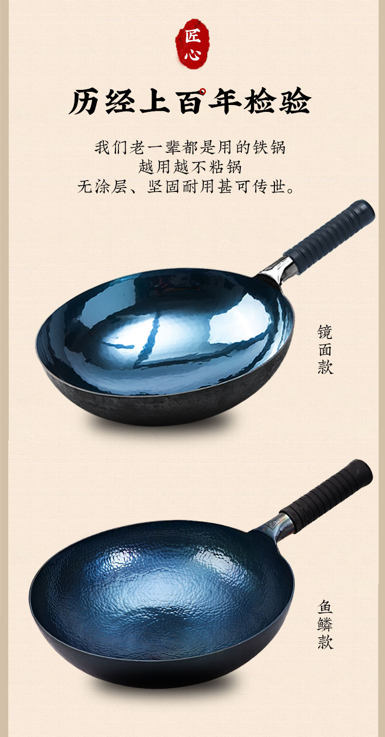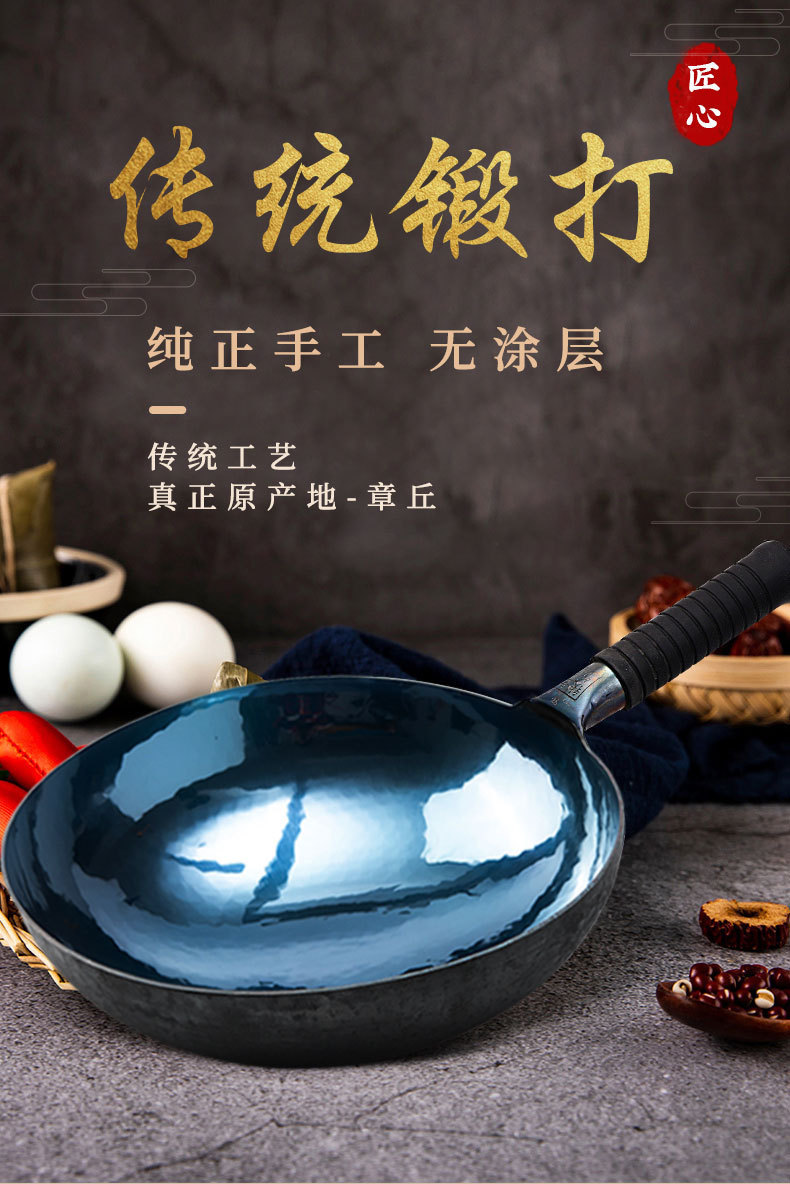 Zhangqiu Wok 수제 철 냄비 공식 플래그십 전통적인 구식 철 냄비 가정용 코팅되지 않은 스틱 팬스토어 가기