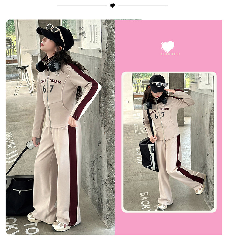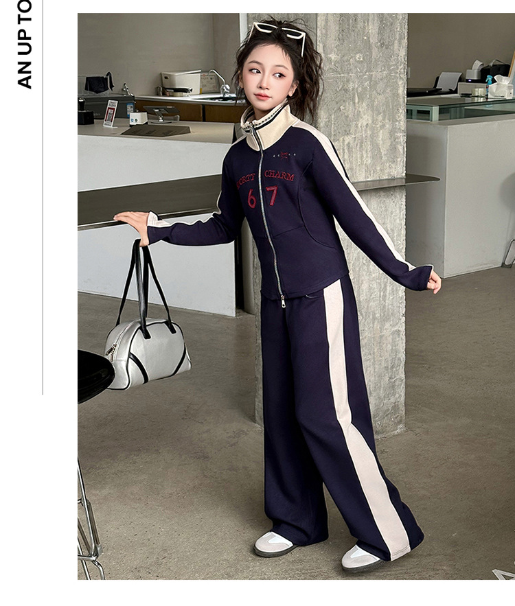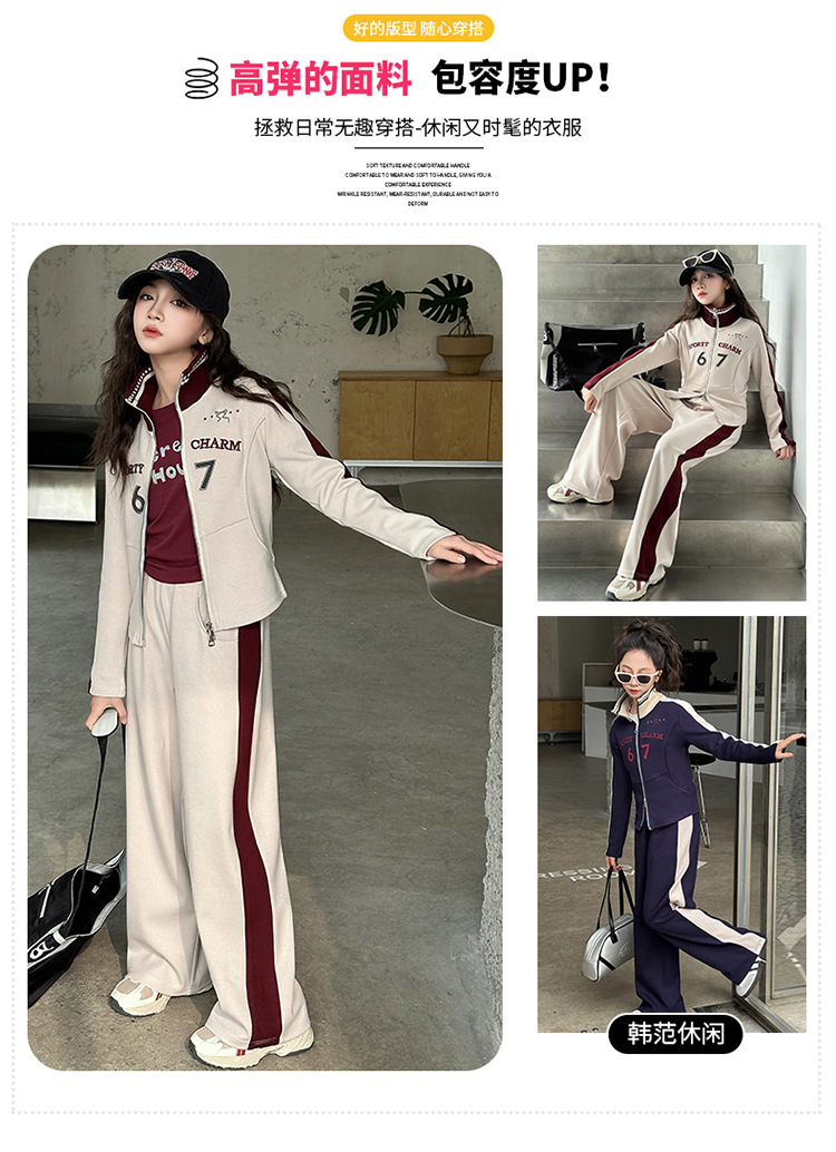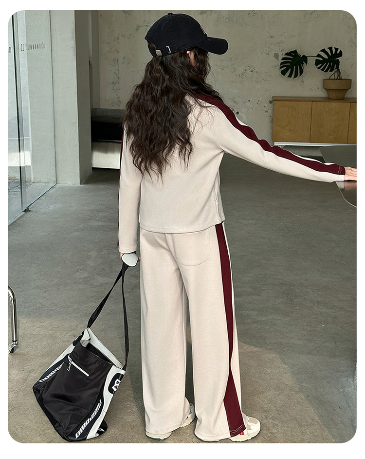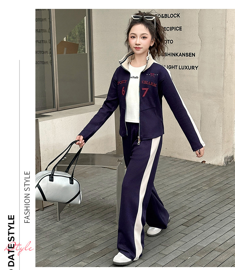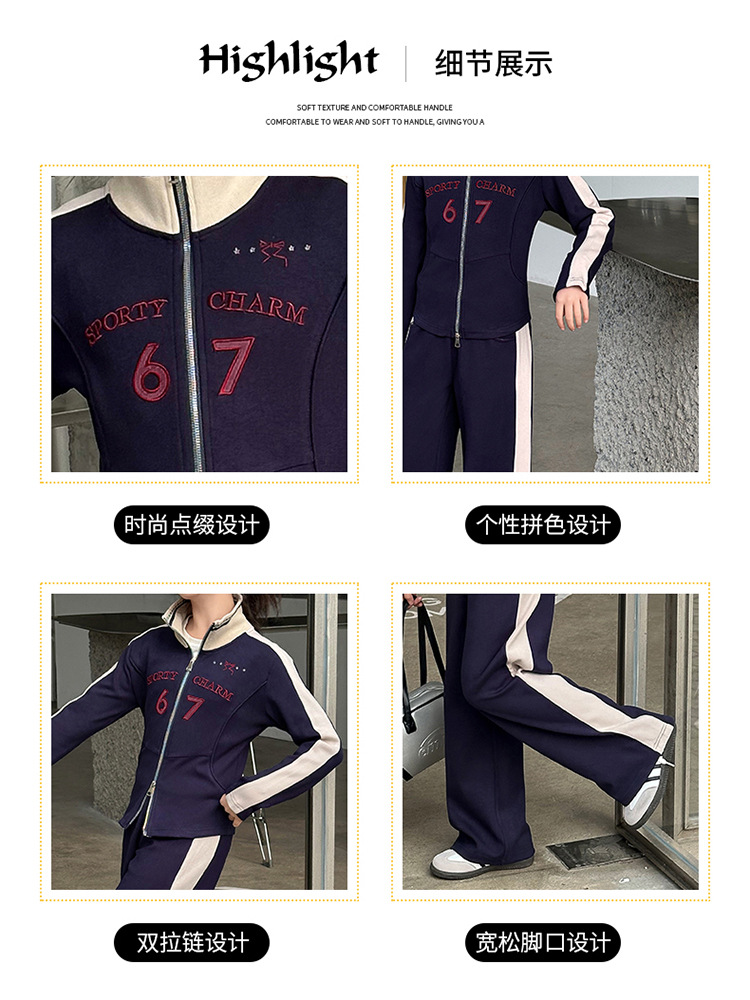 여자 봄 세트 도매 2025 새로운 스티칭 자수 카디건 넓은 다리 바지 투피스 대비 캐주얼 크로스 보더 조수
