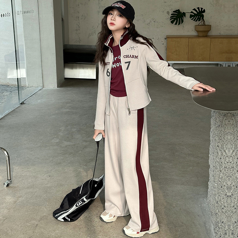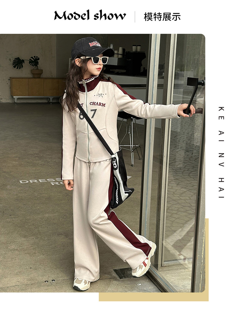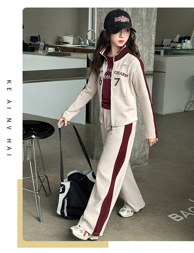 여자 봄 세트 도매 2025 새로운 스티칭 자수 카디건 넓은 다리 바지 투피스 대비 캐주얼 크로스 보더 조수스토어 가기