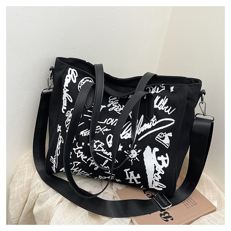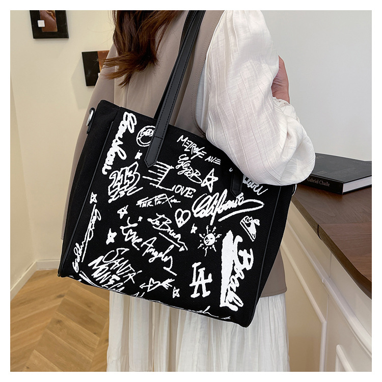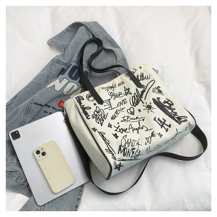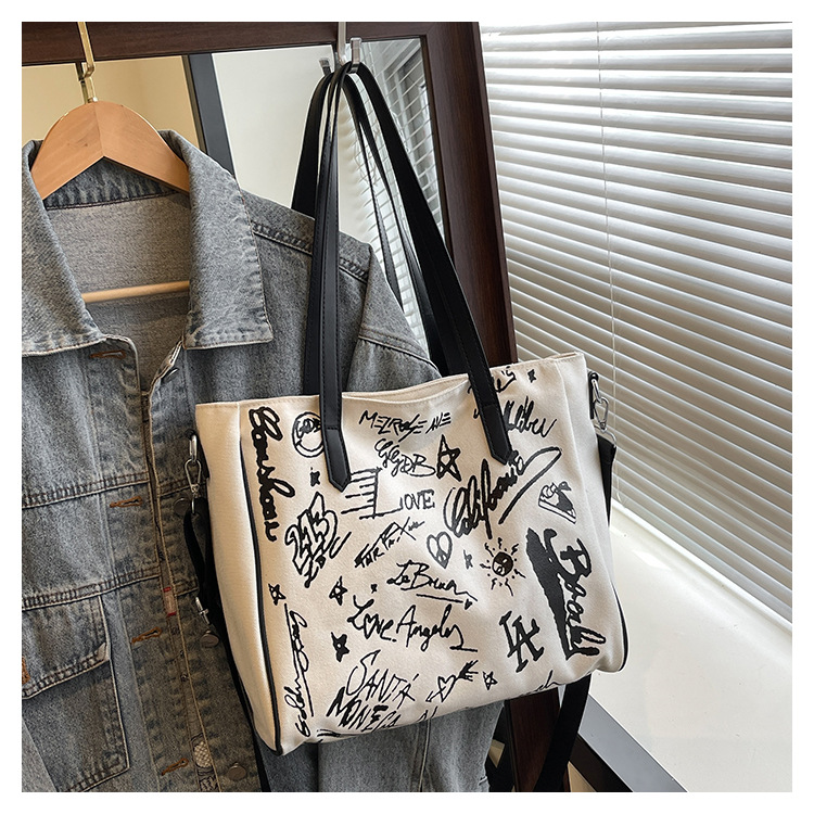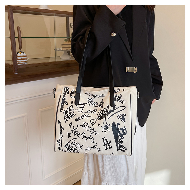 디자인 센스 재미있는 낙서 가방 어깨 새로운 토트 패션 대용량 캔버스 모든 경기 통근 크로스 바디 백 트렌디스토어 가기
