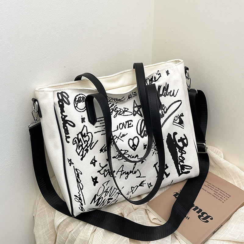디자인 센스 재미있는 낙서 가방 어깨 새로운 토트 패션 대용량 캔버스 모든 경기 통근 크로스 바디 백 트렌디