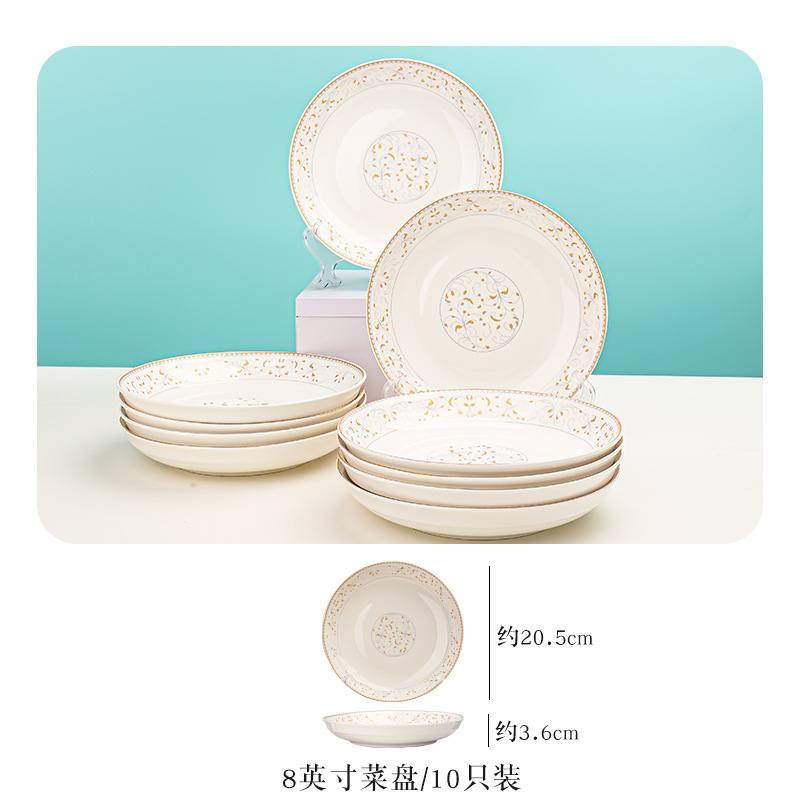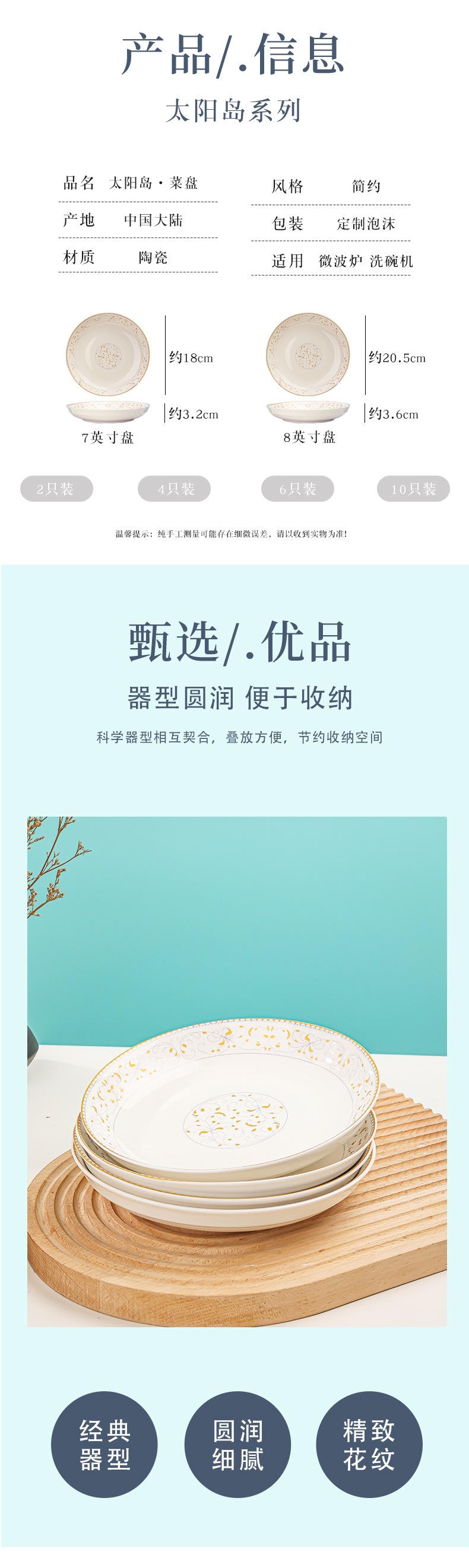 태양 섬 가정용 10 접시 세트 큰 쌀 접시 간단한 중국 세라믹 요리 조합 창조적 인 판스토어 가기