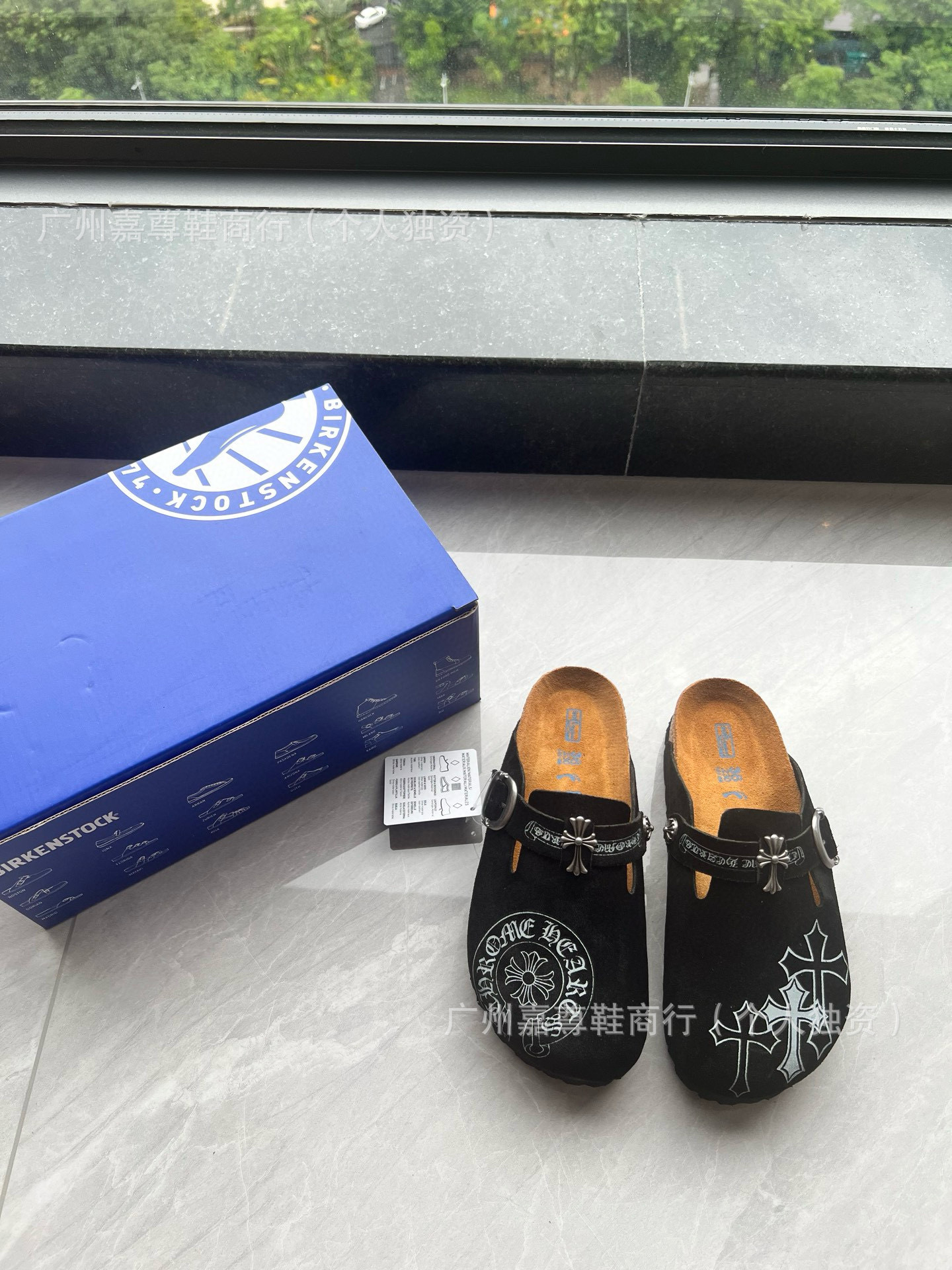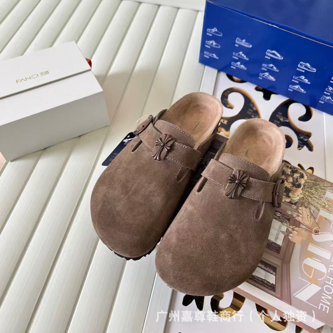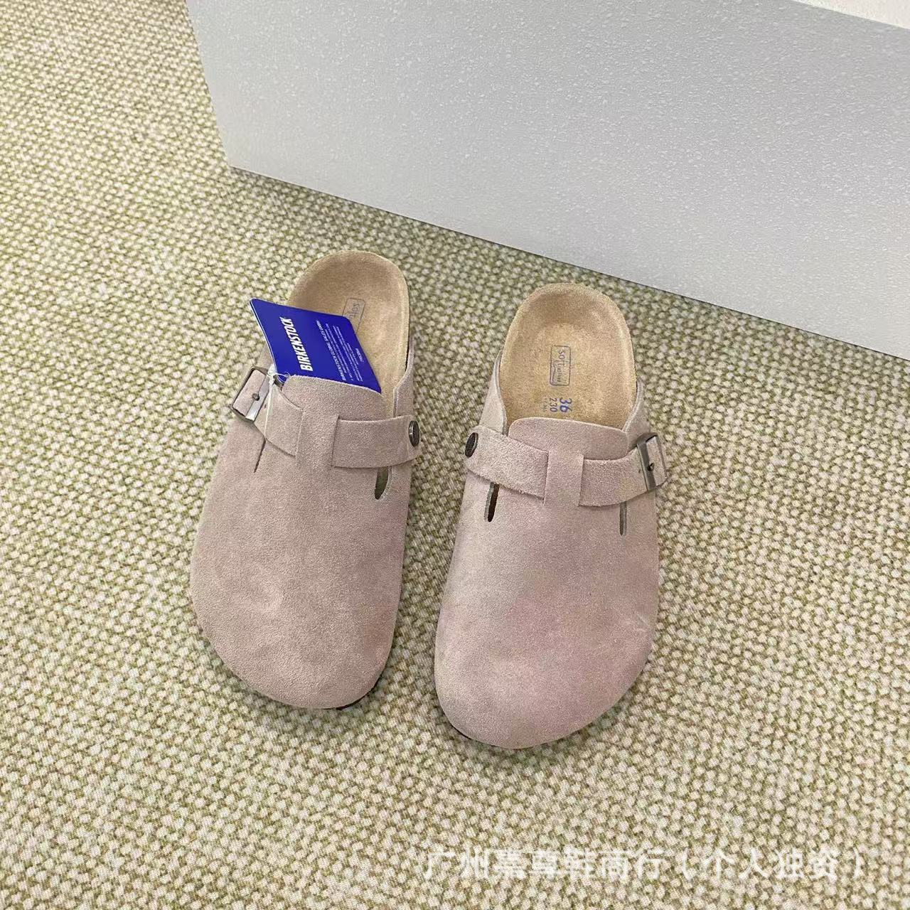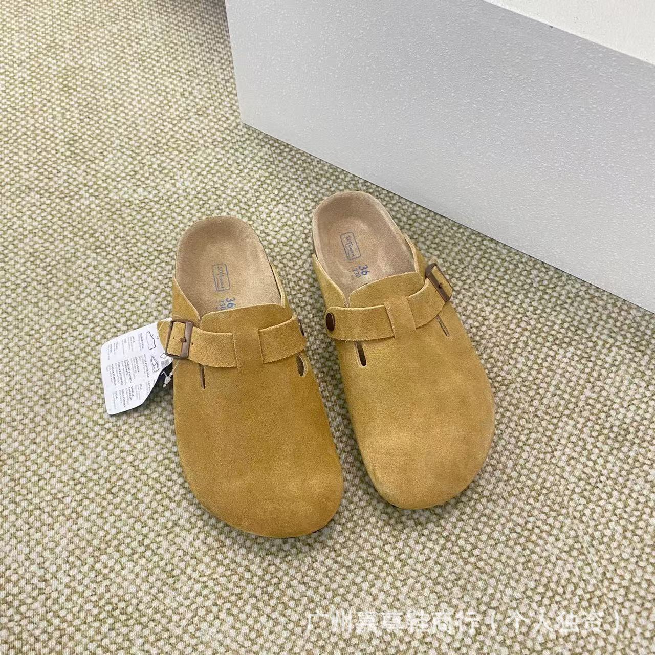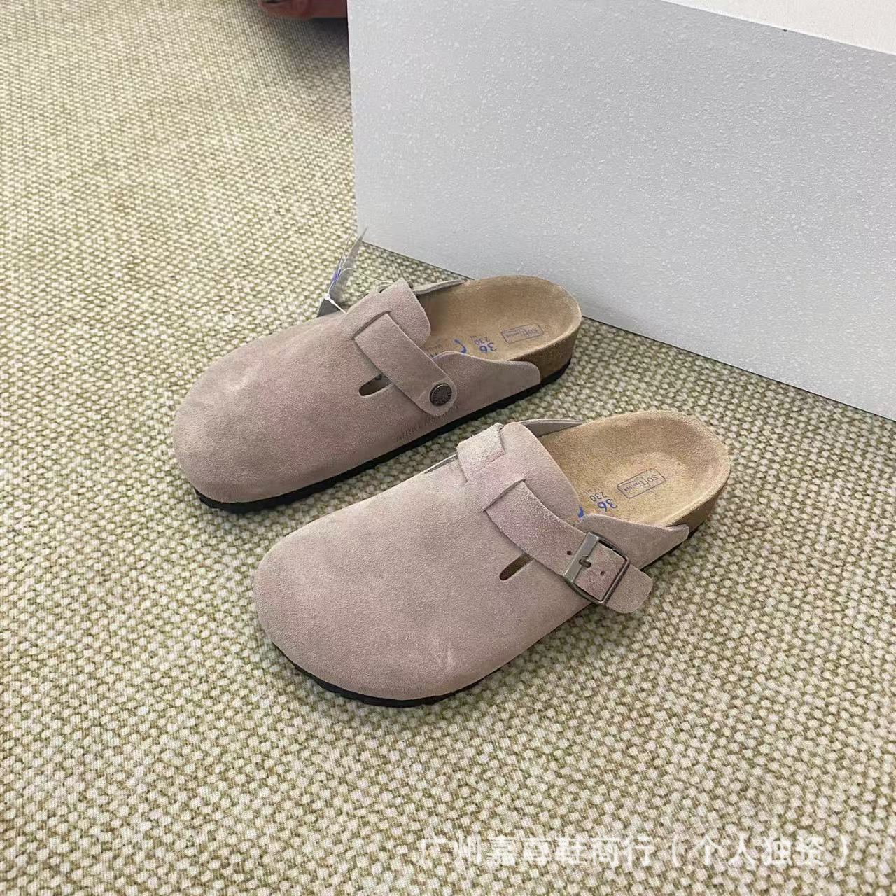 가죽 크로스 보켄 샌들 하이 엔드 상품 보켄 신발 여성용 두꺼운 싱글 보켄 게으른 슬립 온 가죽 힙