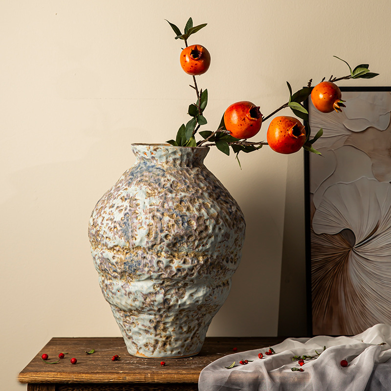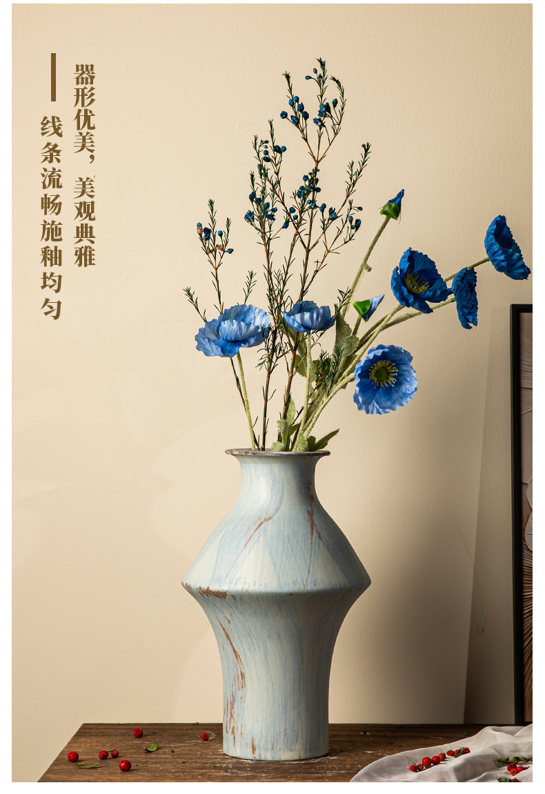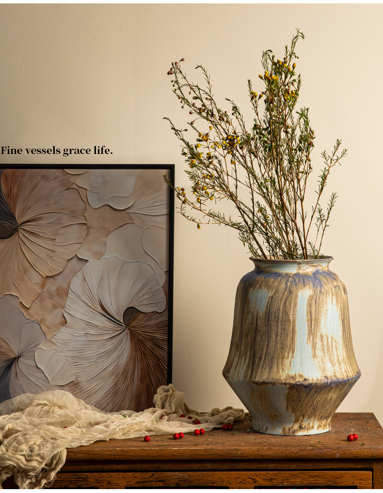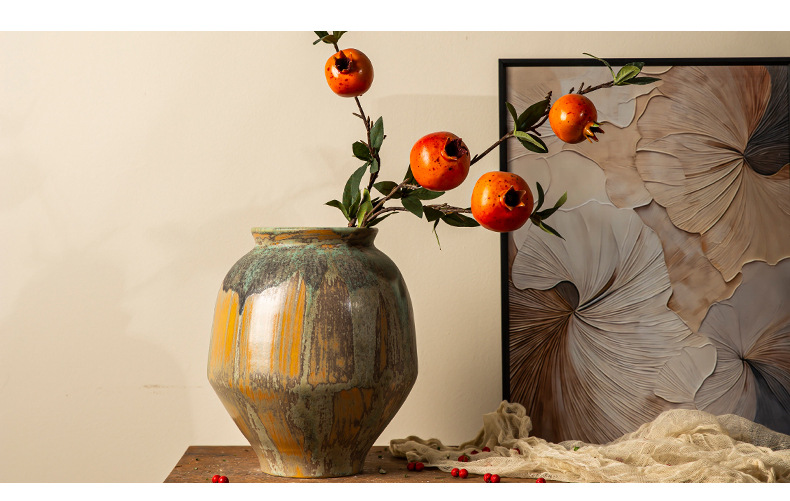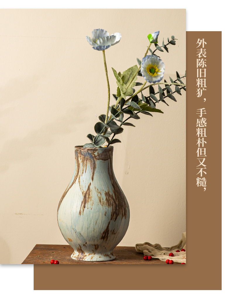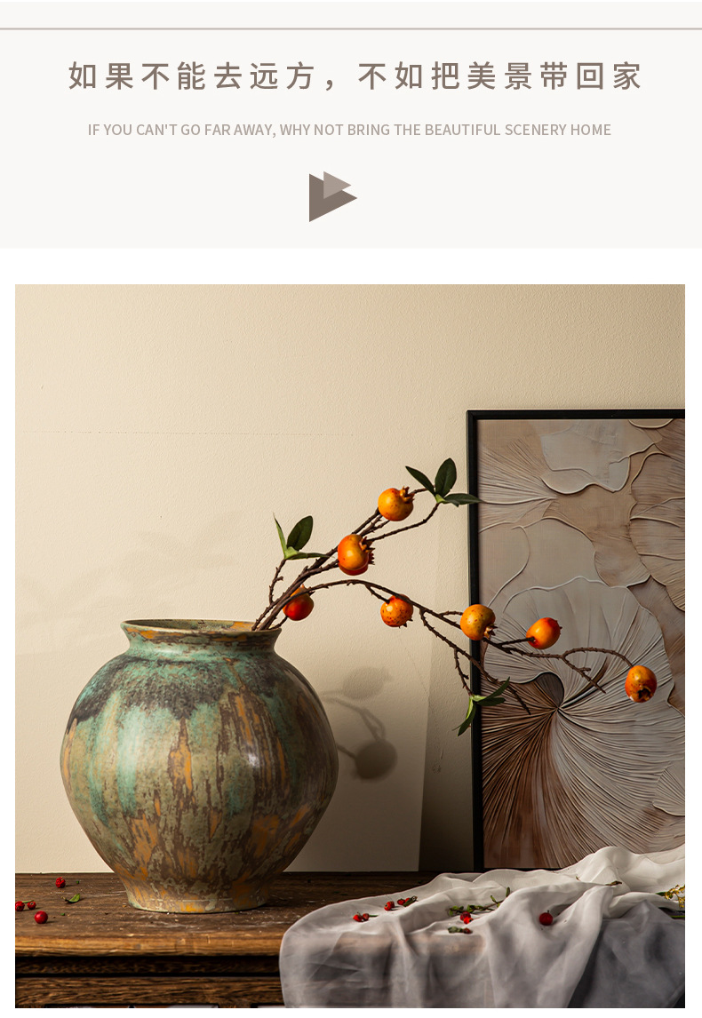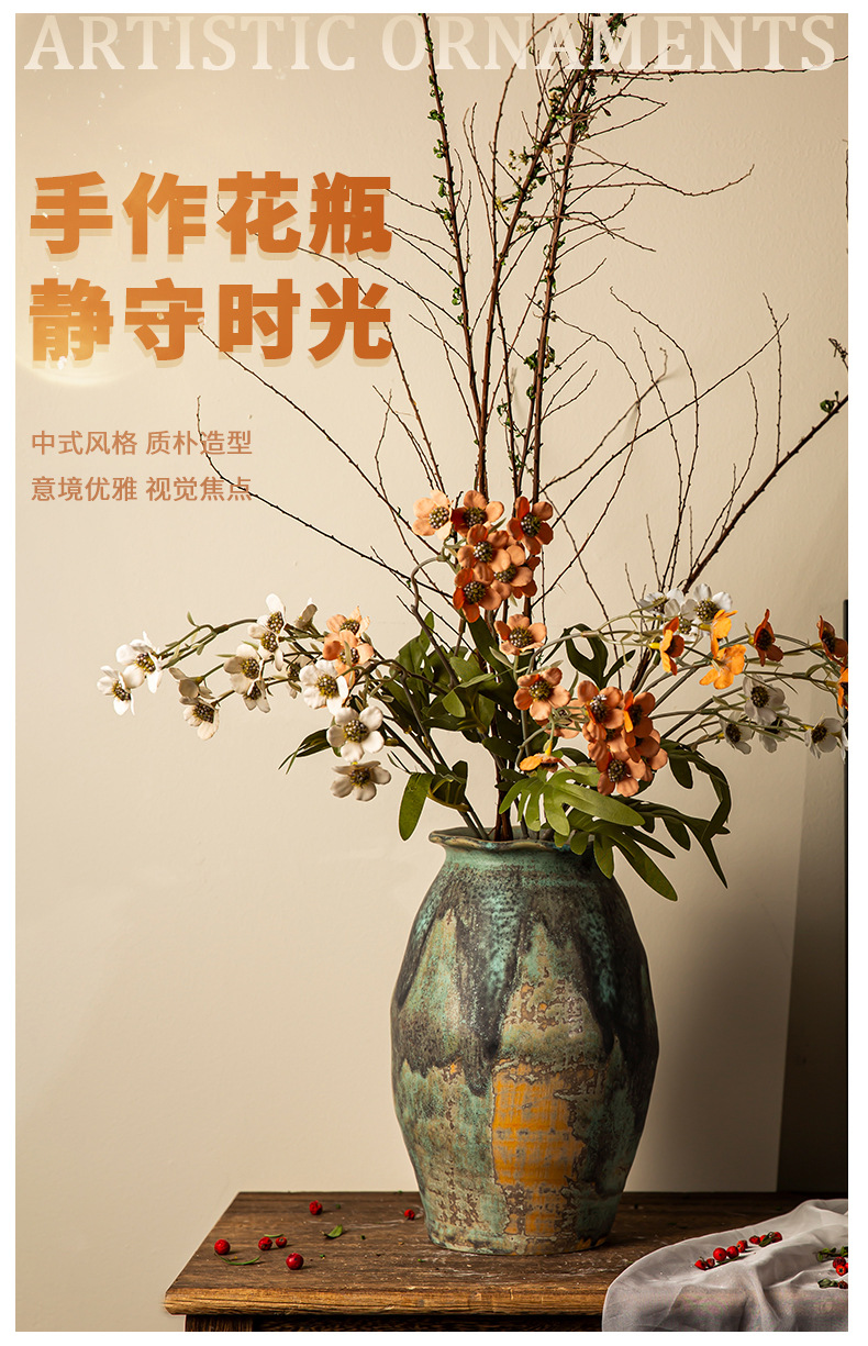 경덕진 복고풍 꽃병 와비사비 스타일 수제 세라믹 녹색 꽃병 물에 담근 꽃 꽃병 거실 꽃꽂이 장식품스토어 가기
