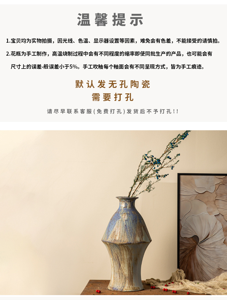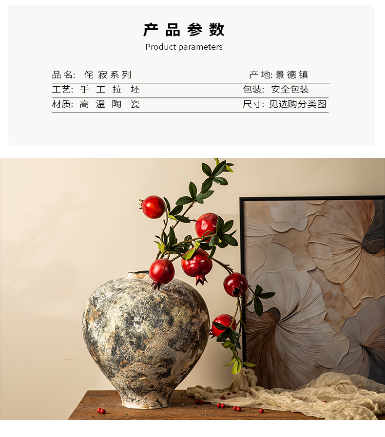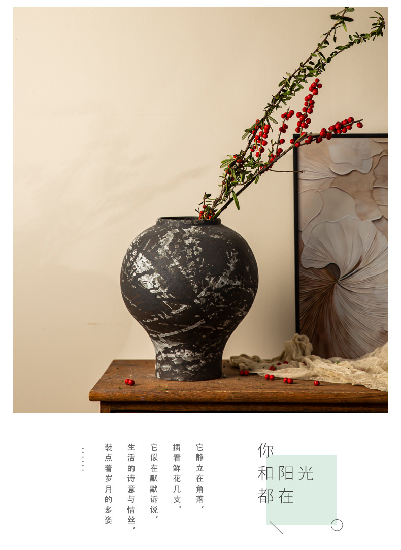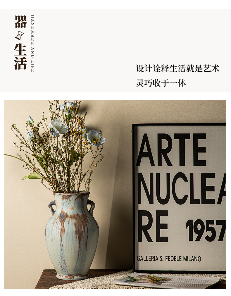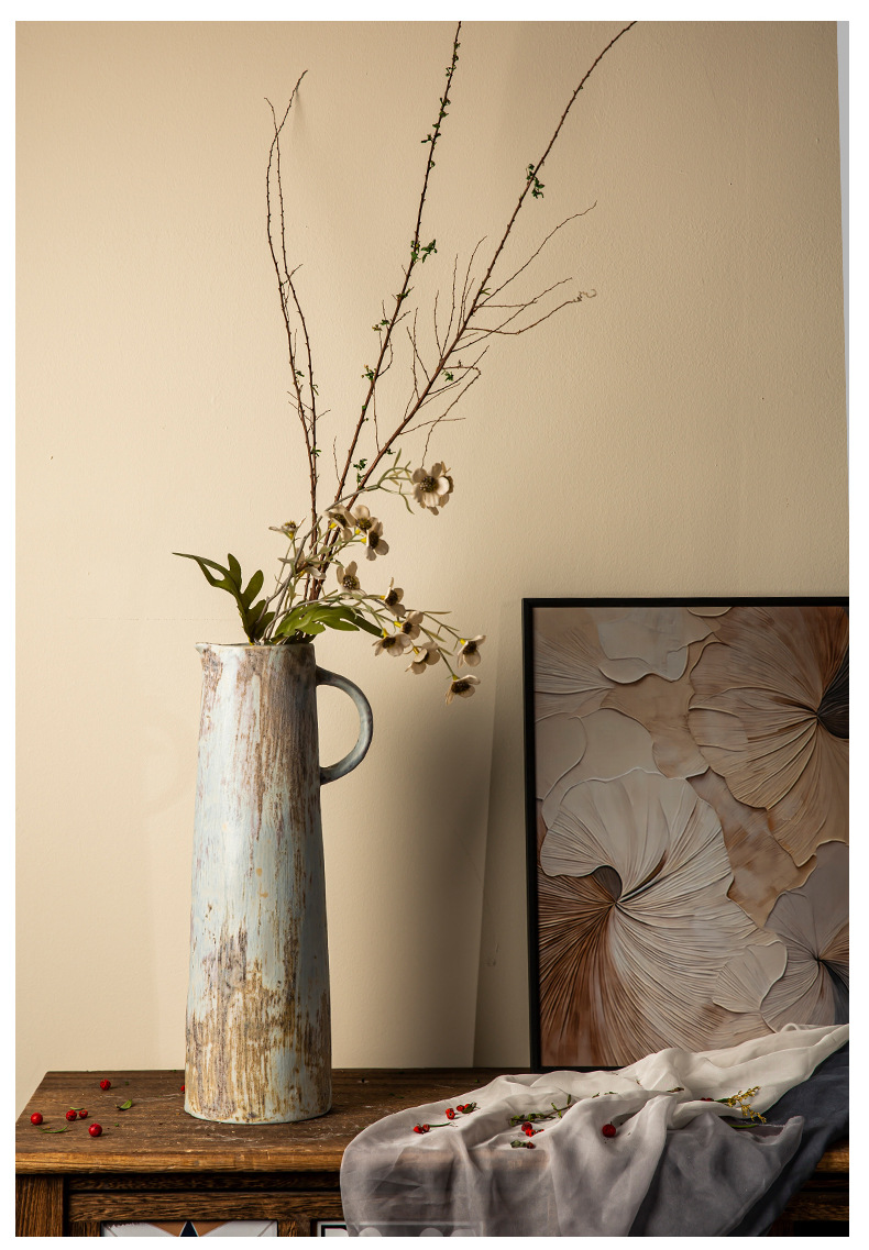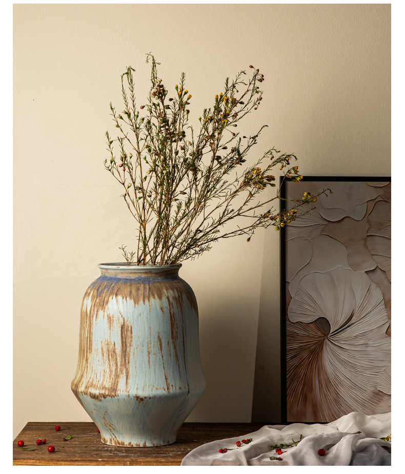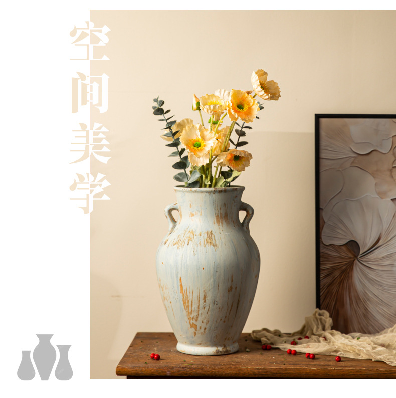 경덕진 복고풍 꽃병 와비사비 스타일 수제 세라믹 녹색 꽃병 물에 담근 꽃 꽃병 거실 꽃꽂이 장식품스토어 가기