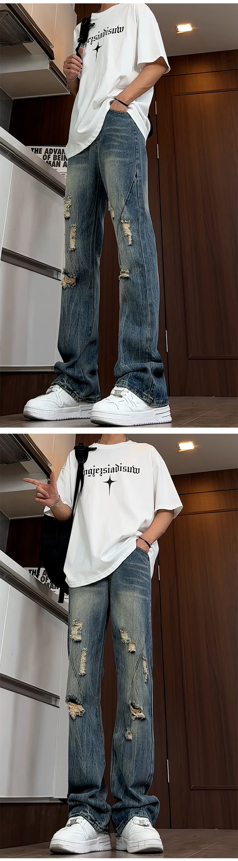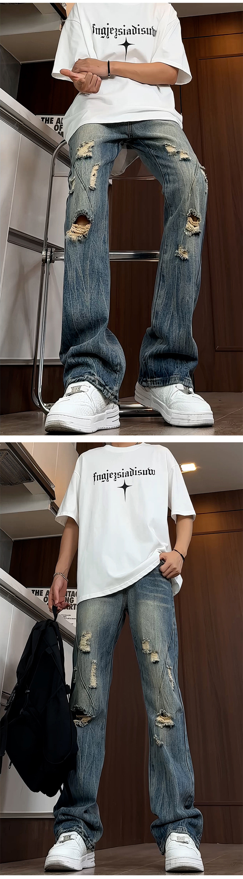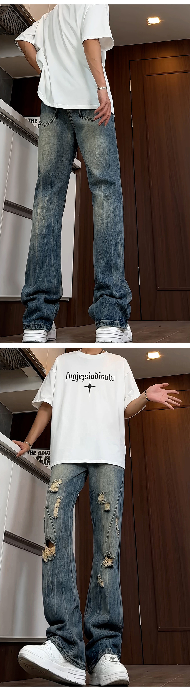 블랙 리핑 시미 타르 청바지 남성 여름 아메리칸 스타일 하이 스트리트 바이브 바지 키가 큰 긴 슬림 핏 마이크로 라르 바지스토어 가기