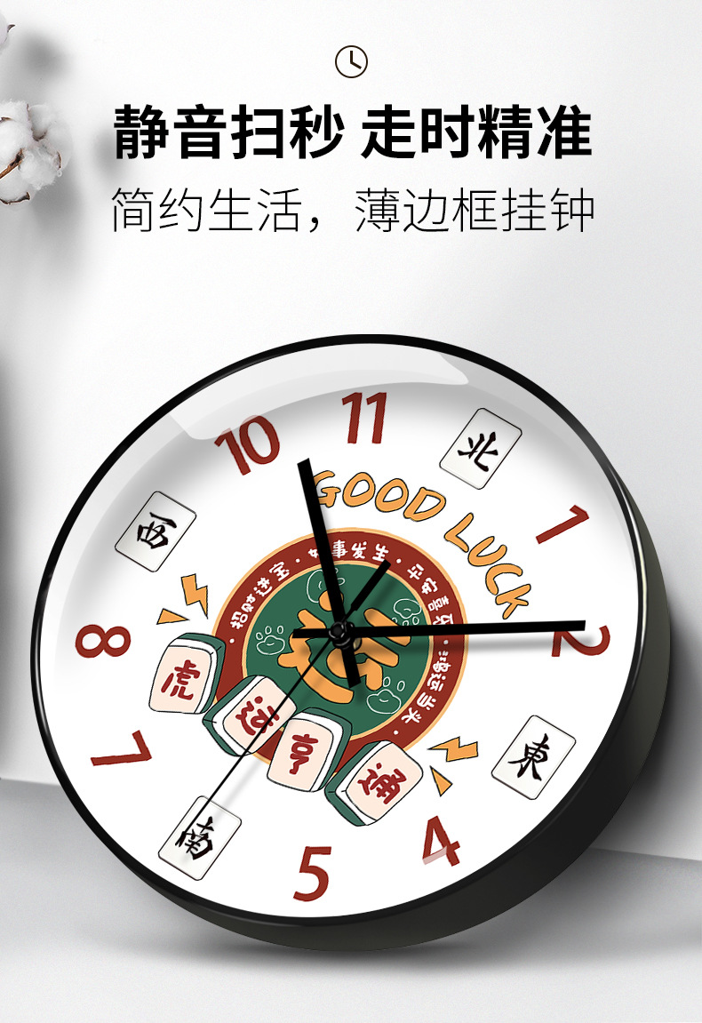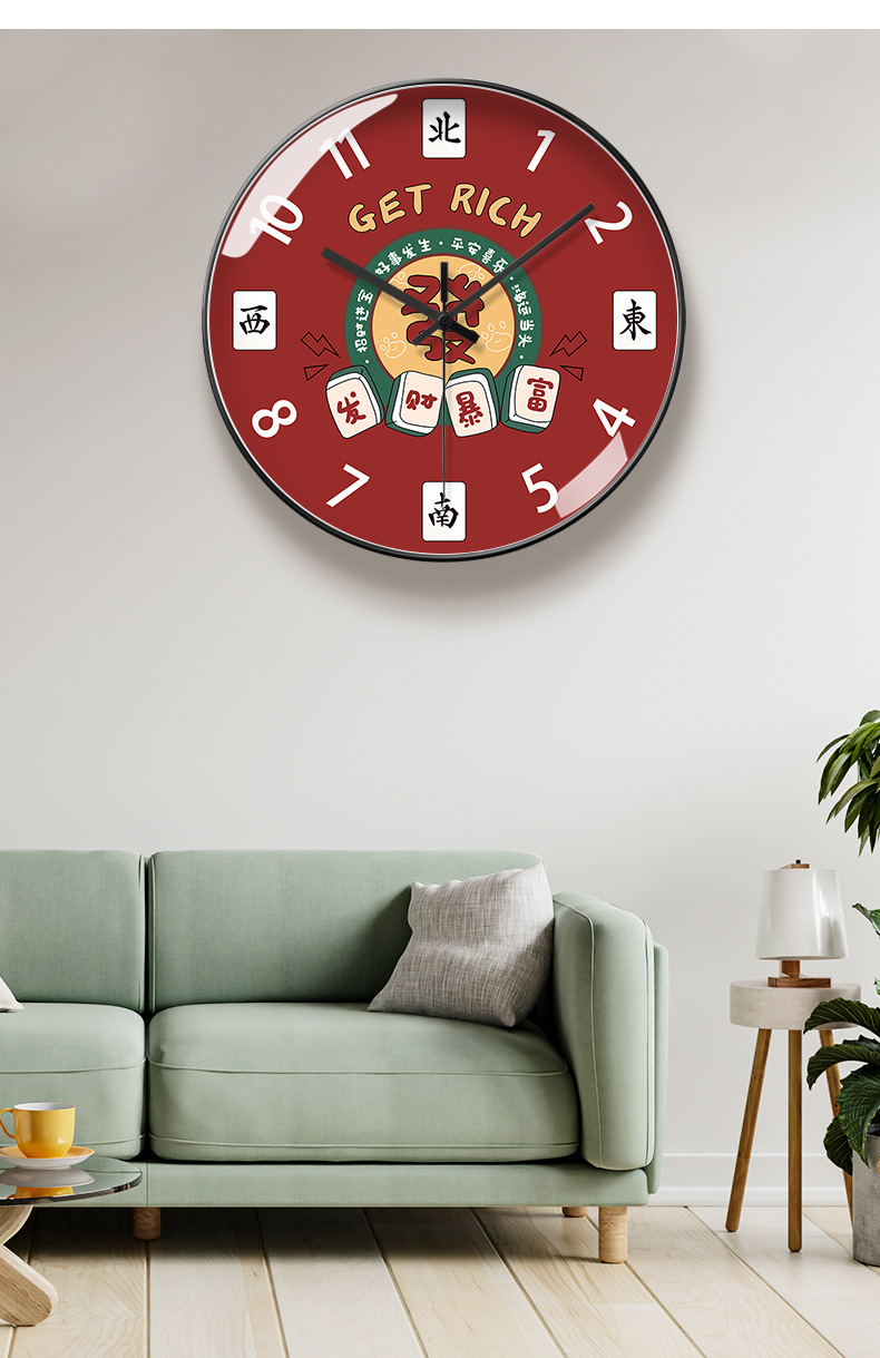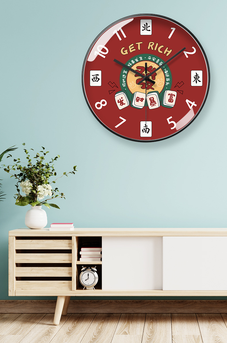 마작 장식 벽 시계 운세 시계 체스 및 카드 룸 자동 시계 간단한 원래 웨이브 시계 음소거 테이블 벽 교수형스토어 가기