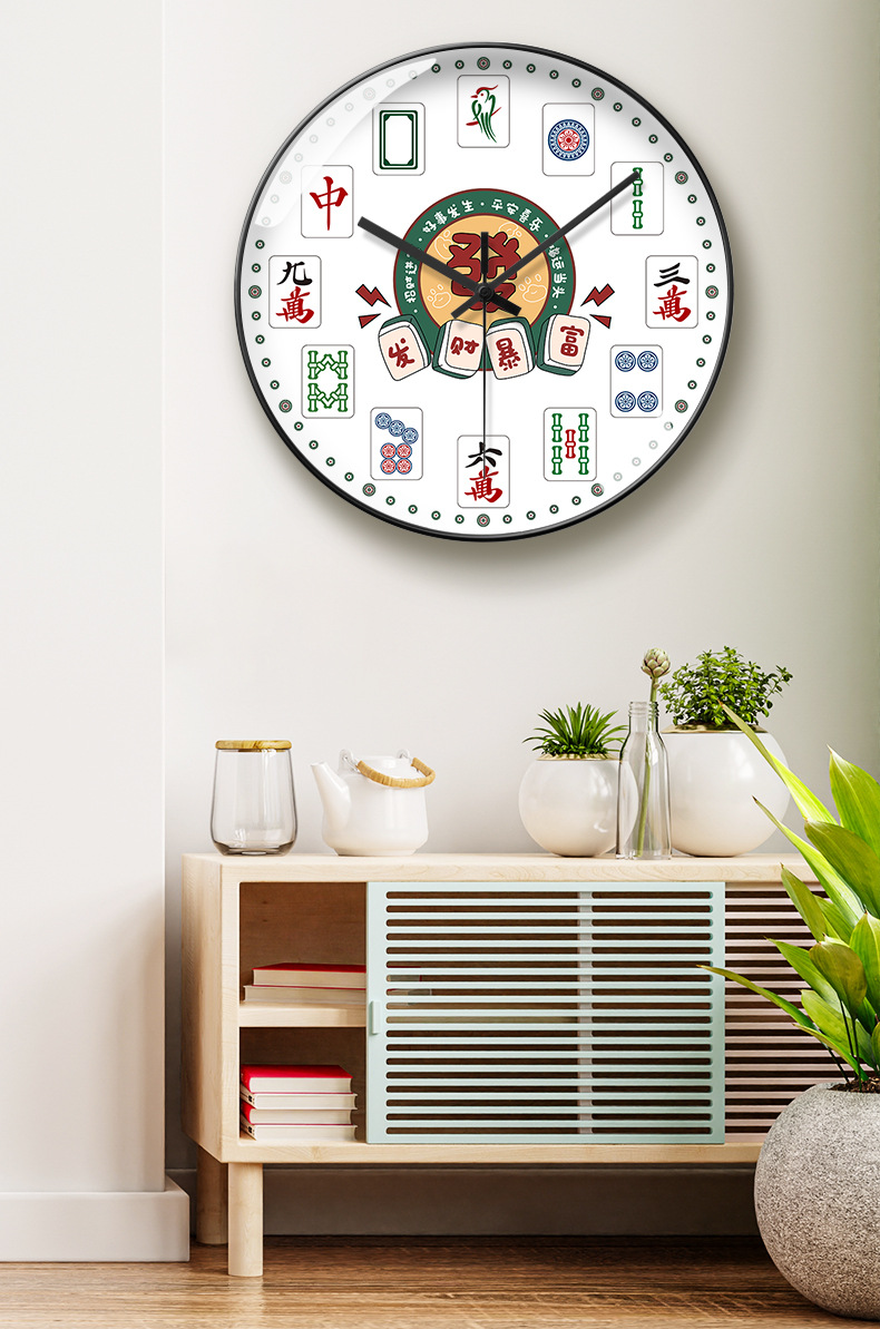 마작 장식 벽 시계 운세 시계 체스 및 카드 룸 자동 시계 간단한 원래 웨이브 시계 음소거 테이블 벽 교수형