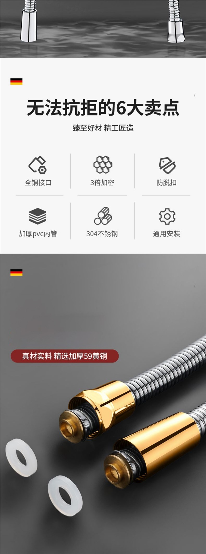 • ✅1.5m 실버 두꺼운 대형 물 출력 암호화 방폭 파이프 + 3스톱 원형 슈퍼차지 샤워 헤드
