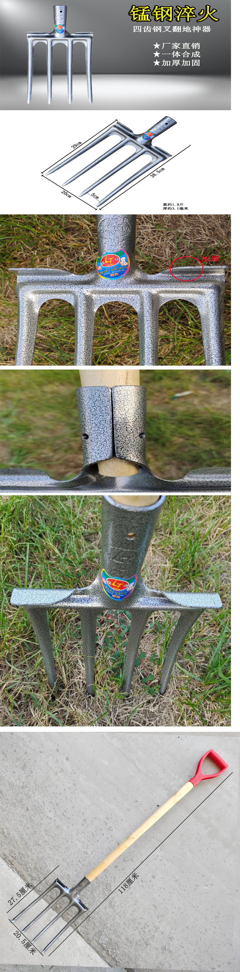 • Litian 네 갈래 포크 + 1m 검정색 플라스틱 손잡이(철)