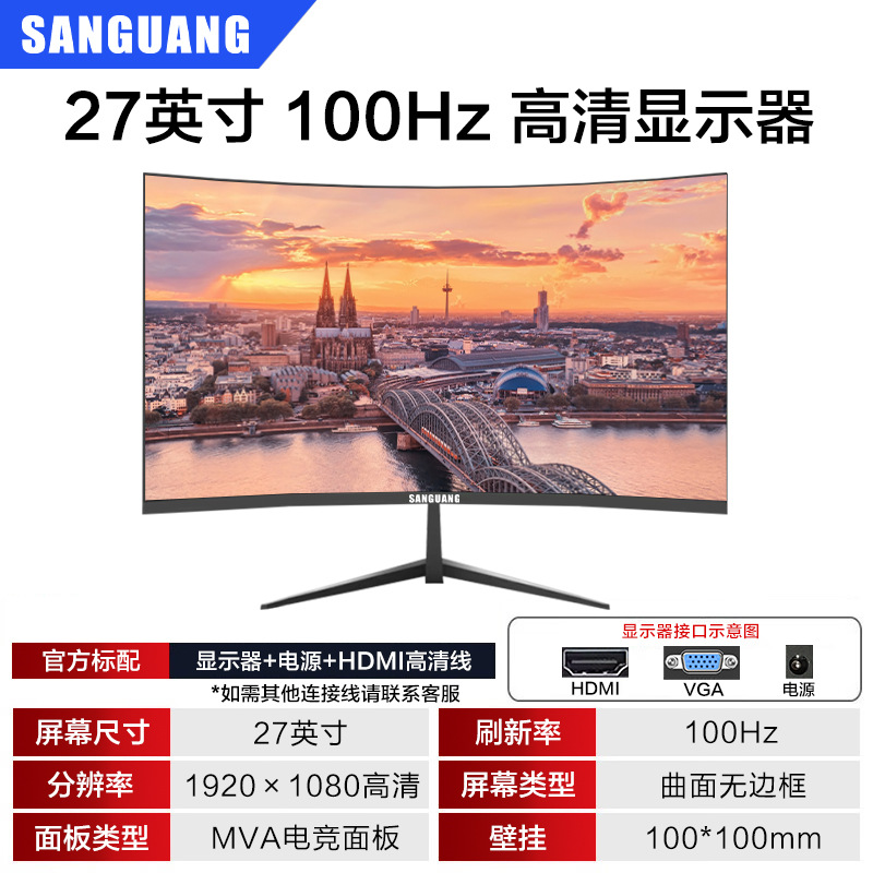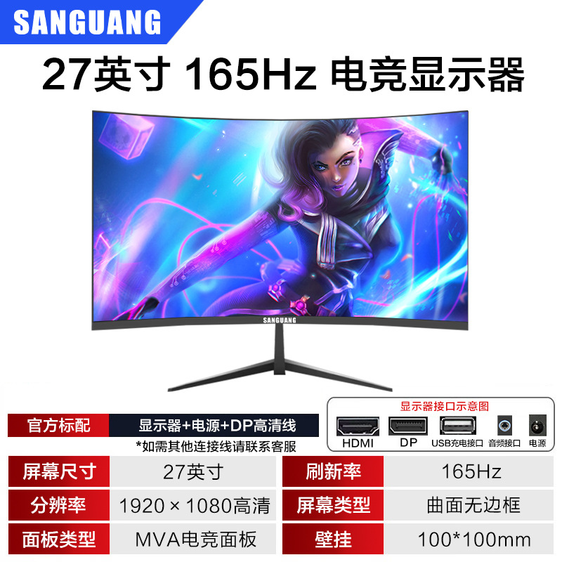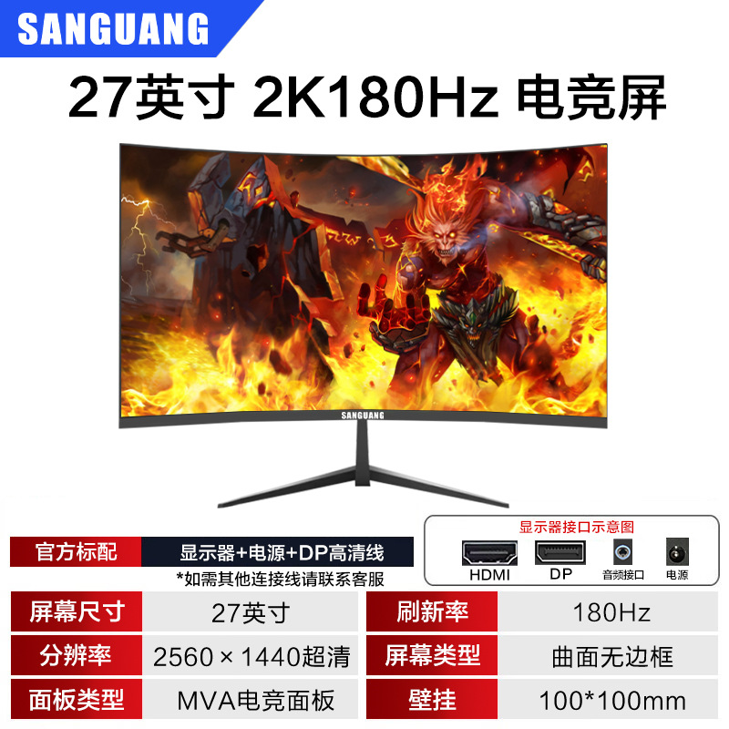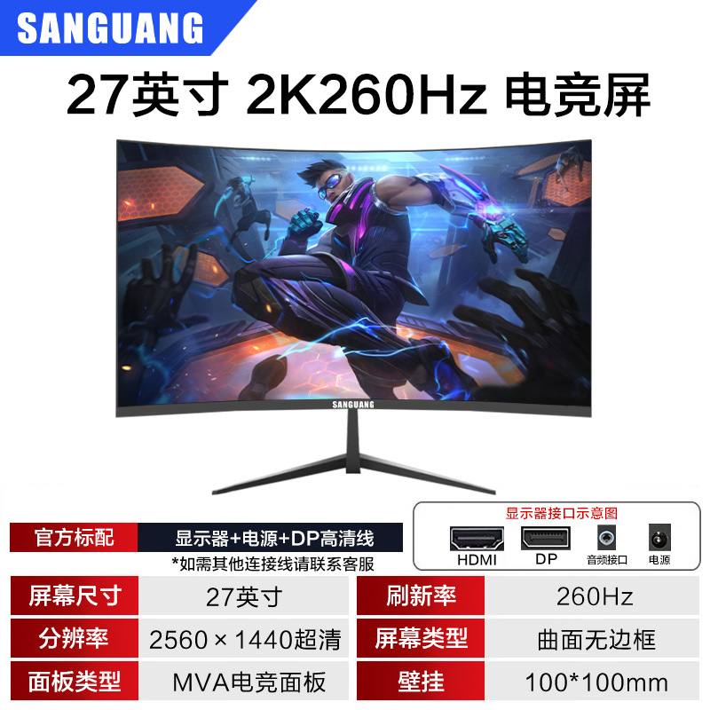 • 27inch 커브드 블랙 [2K 울트라 클리어 + 260Hz] 고급 e스포츠 - 공식 표준