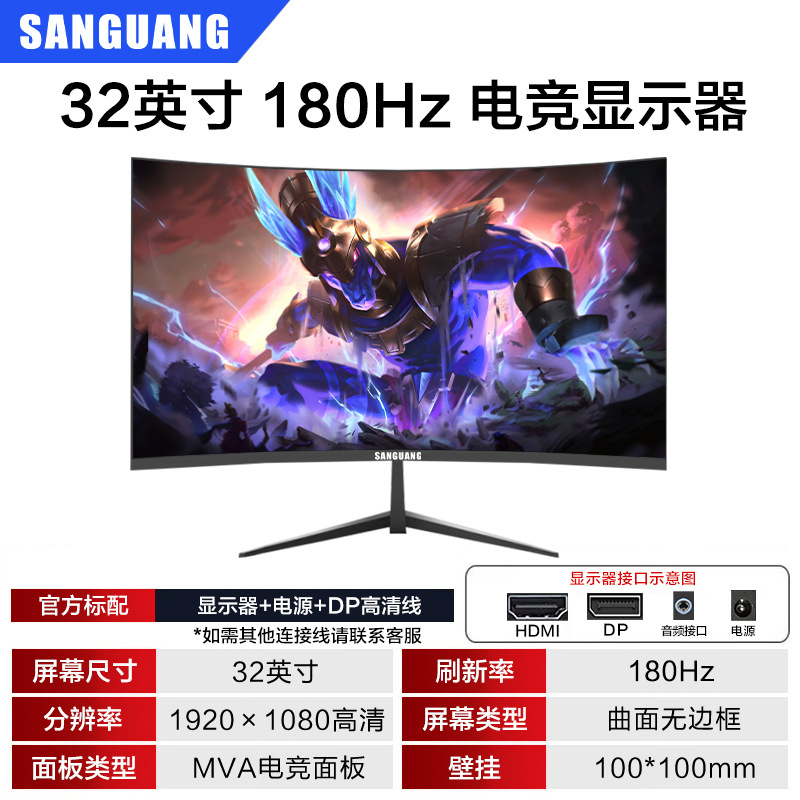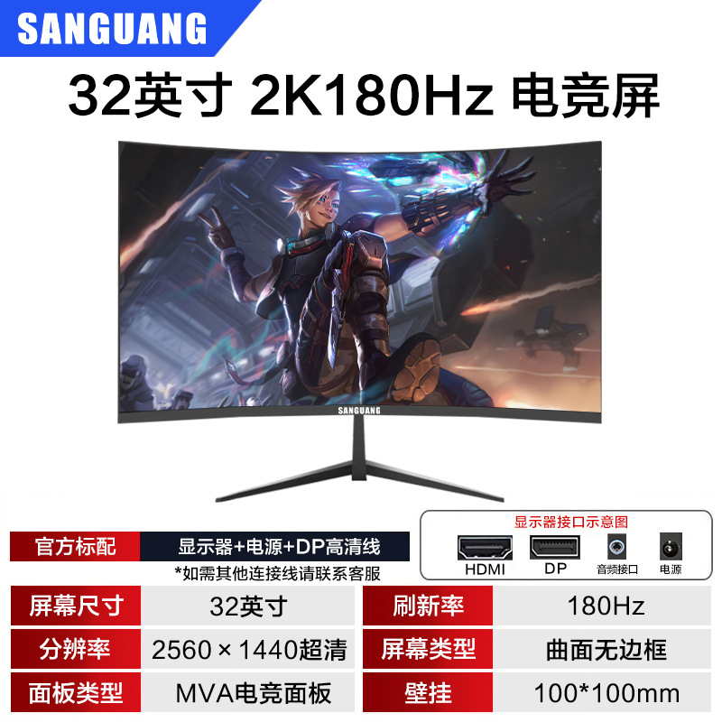 • 32inch 커브드 블랙 [2K 울트라 클리어 +180Hz] 몰입형 e스포츠 공식 표준