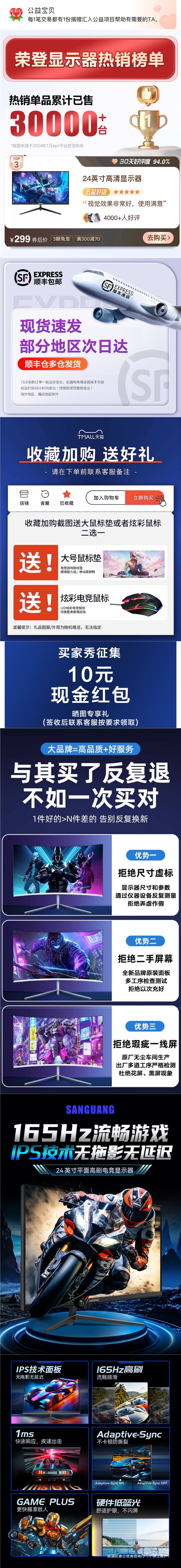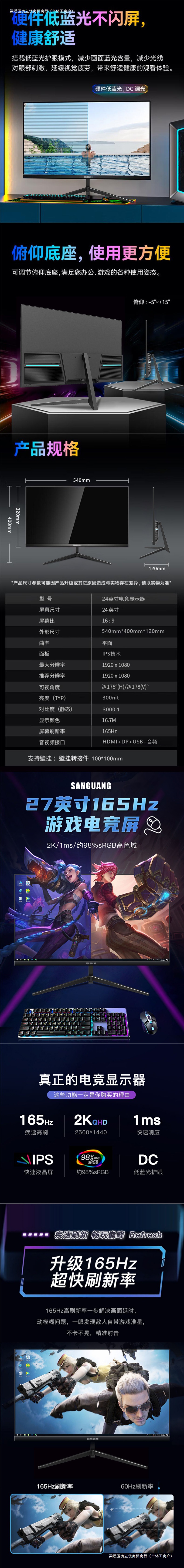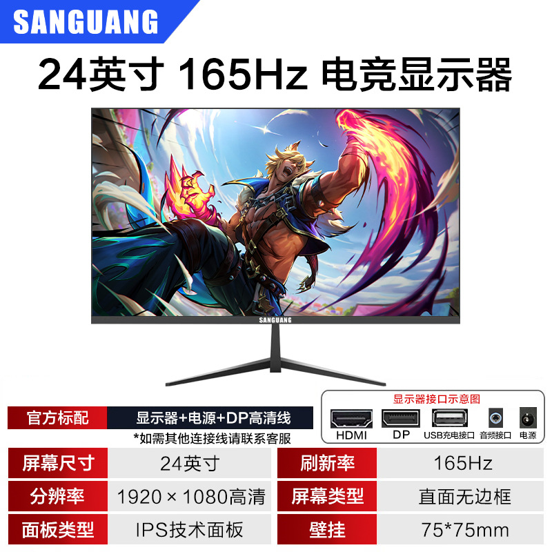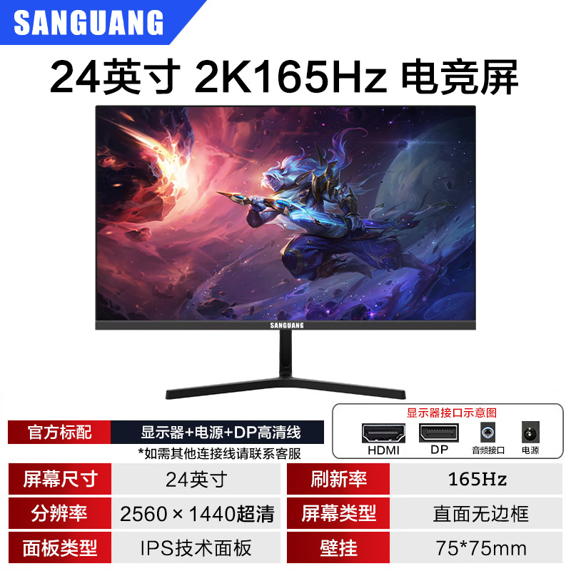 • 24inch 대면 블랙 [2K 울트라 클리어 + 165Hz] 플래그십 e스포츠 - 공식 표준 구성