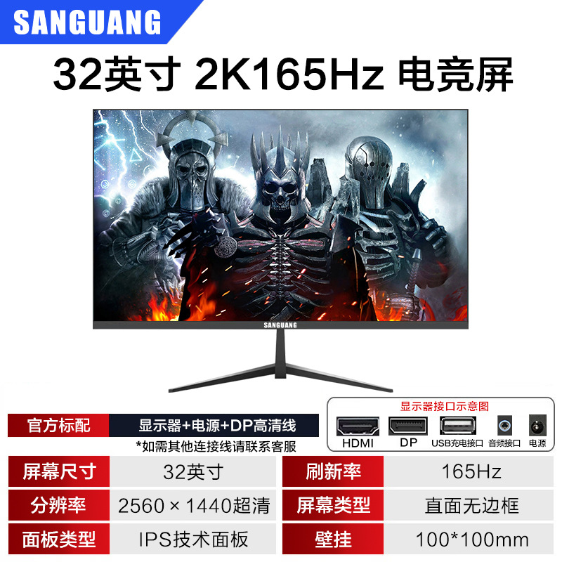 • 32inch 대면 블랙 [2K 울트라 클리어 +165Hz] 몰입형 e스포츠 공식 표준