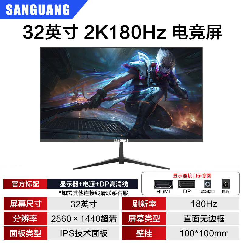 • 32inch 대면 블랙 [2K 울트라 클리어 +180Hz] 몰입형 e스포츠 - 공식 표준