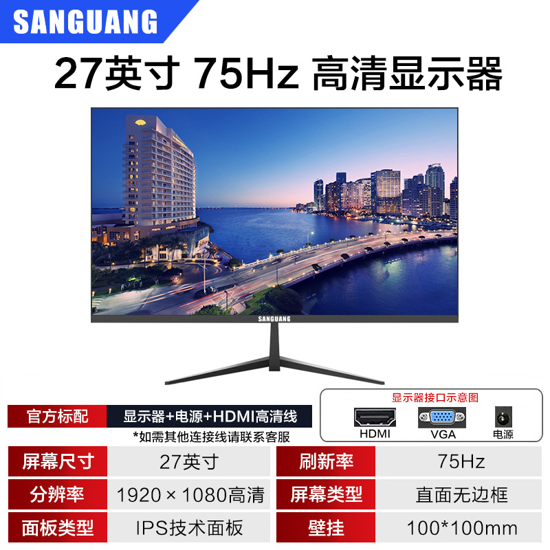 • 27inch 대면 블랙 [Borderless +75Hz] 사무용 대형 화면 - 공식 표준