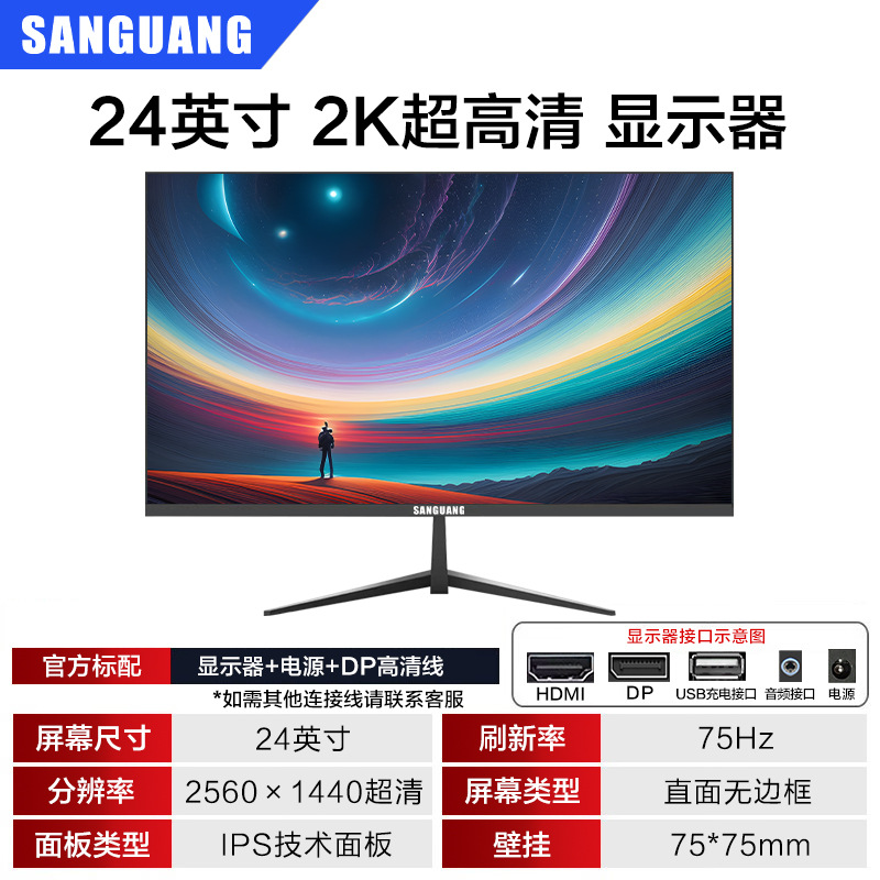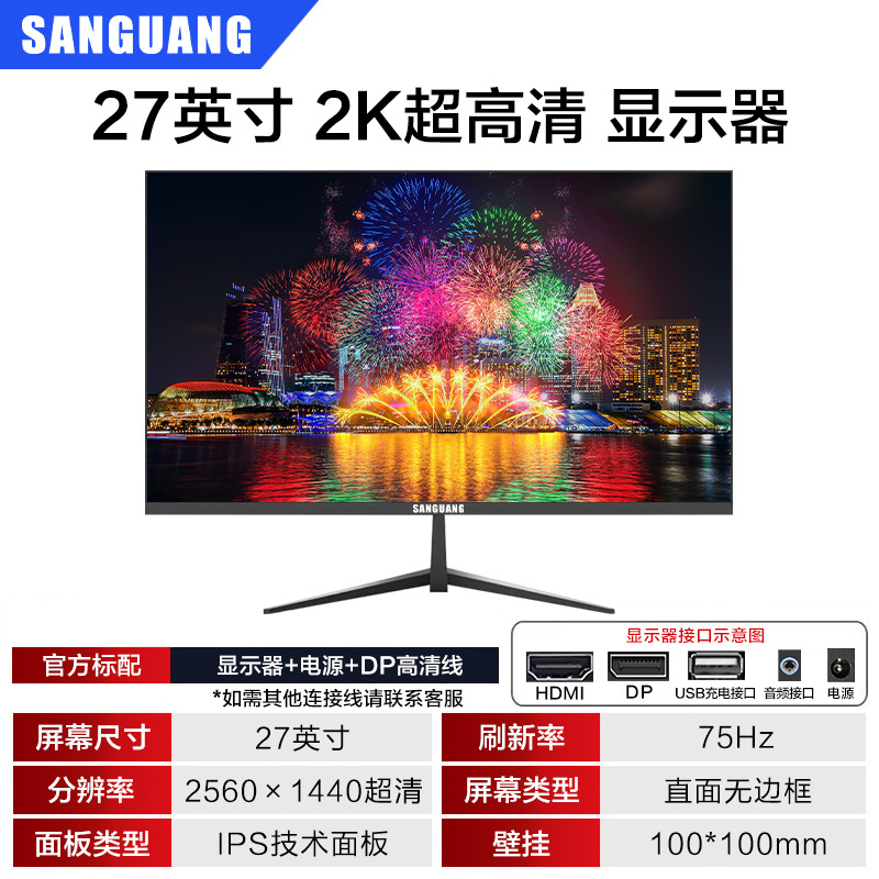 • 27inch 대면 블랙 [2K 울트라 클리어 + 75Hz] 디자인 대형 화면 - 공식 표준