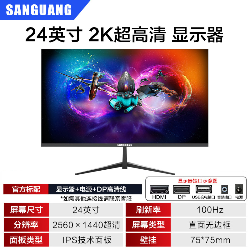 • 24inch 대면 블랙 [2K 울트라 클리어 +100Hz]-공식 표준