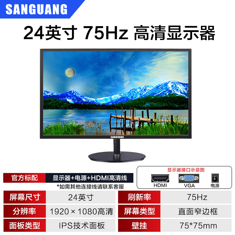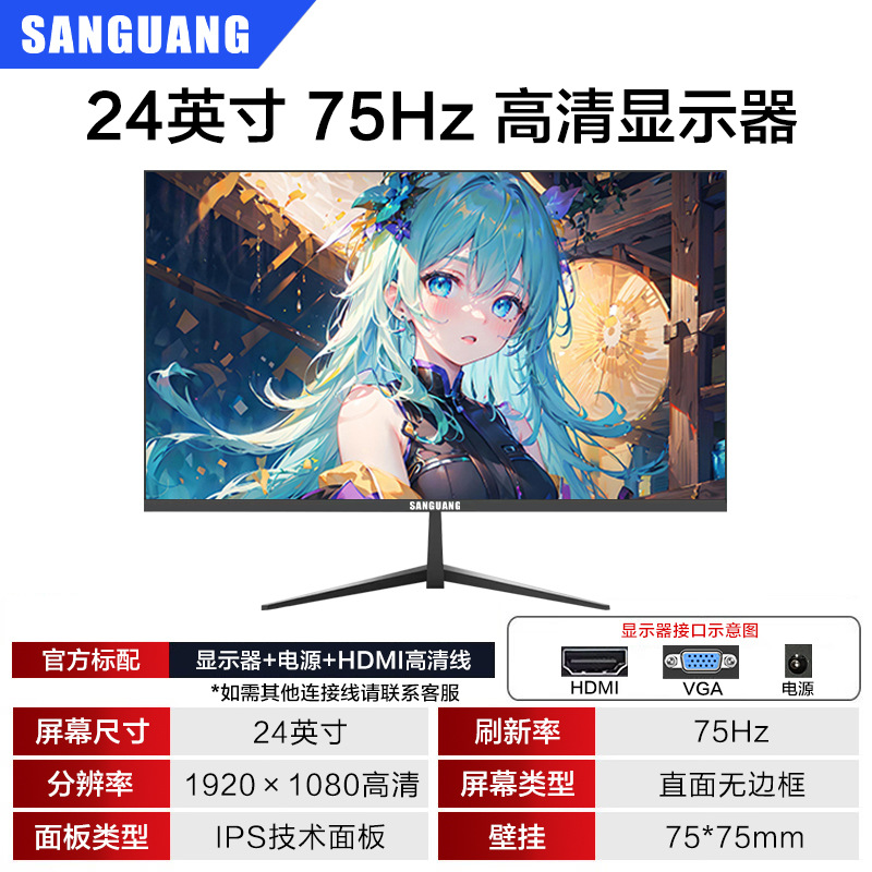 • 24inch 페이스 블랙 [좁은 가장자리 +75Hz] - 공식 표준