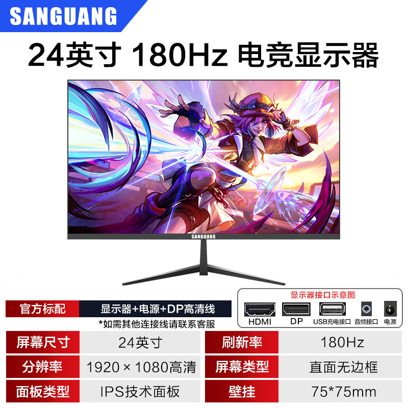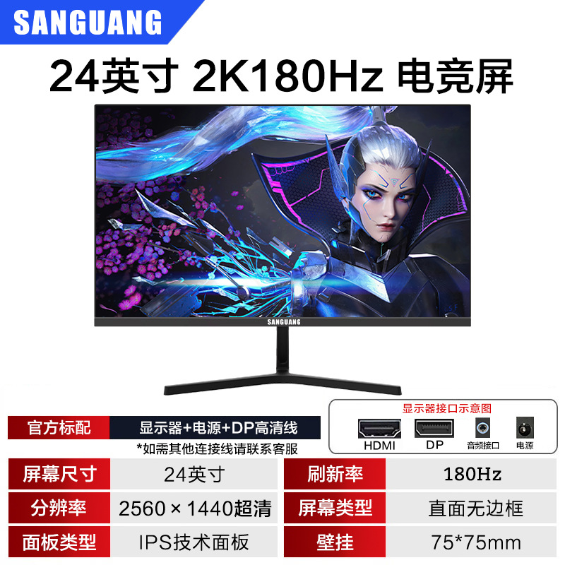 • 24inch 대면 블랙 [2K 울트라 클리어 + 180Hz] 플래그십 e스포츠 - 공식 표준 구성