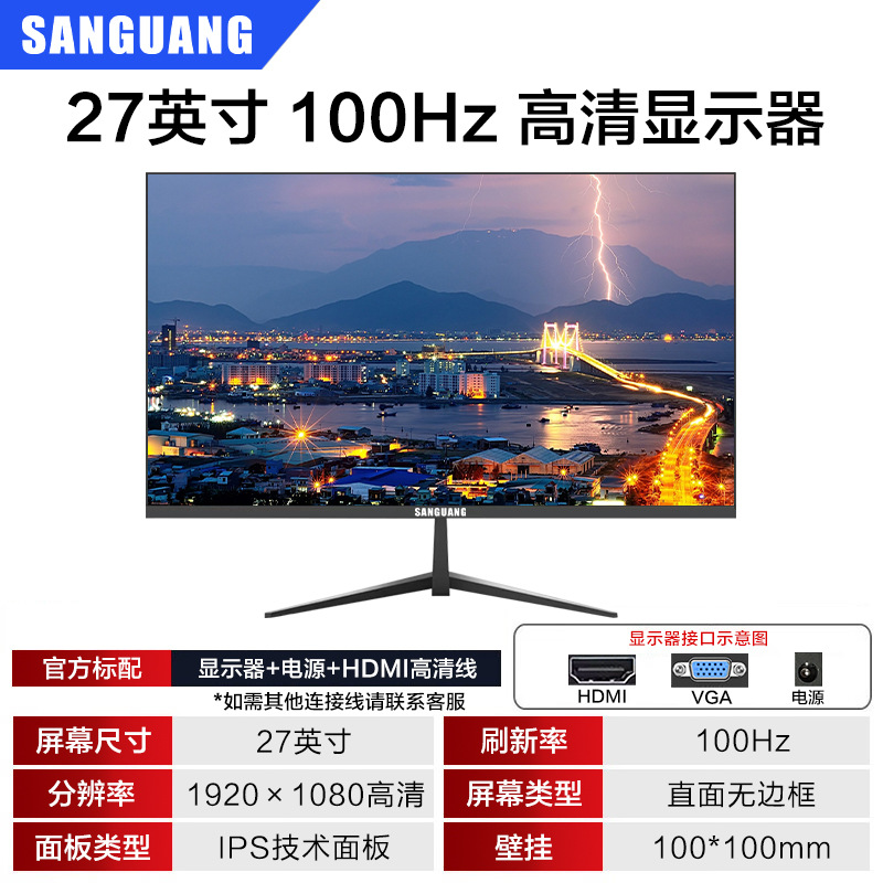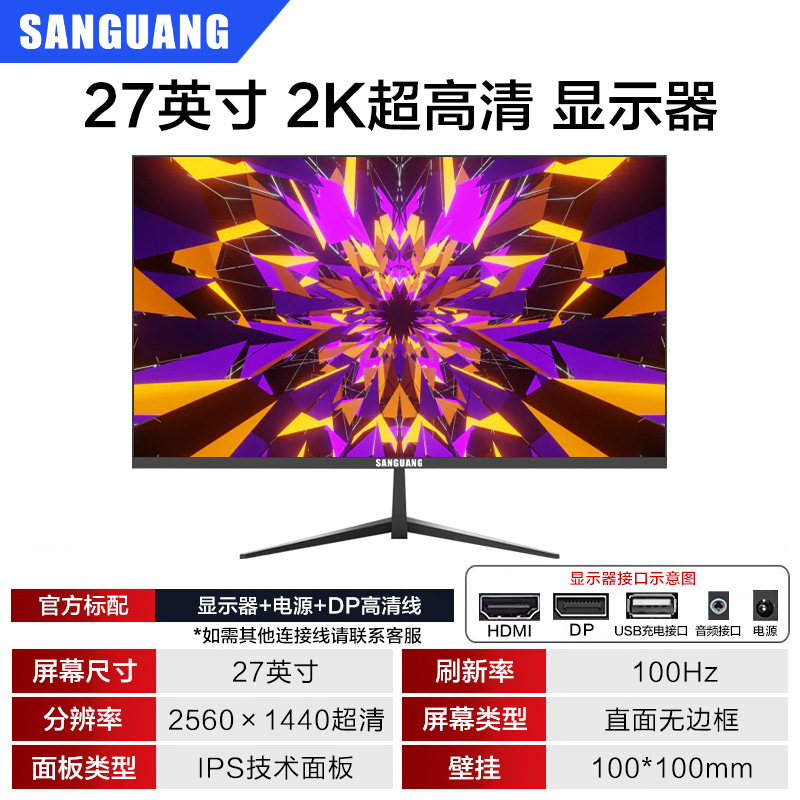• 27inch 대면 블랙 [2K 울트라 클리어 + 100Hz] 디자인 대형 화면 - 공식 표준