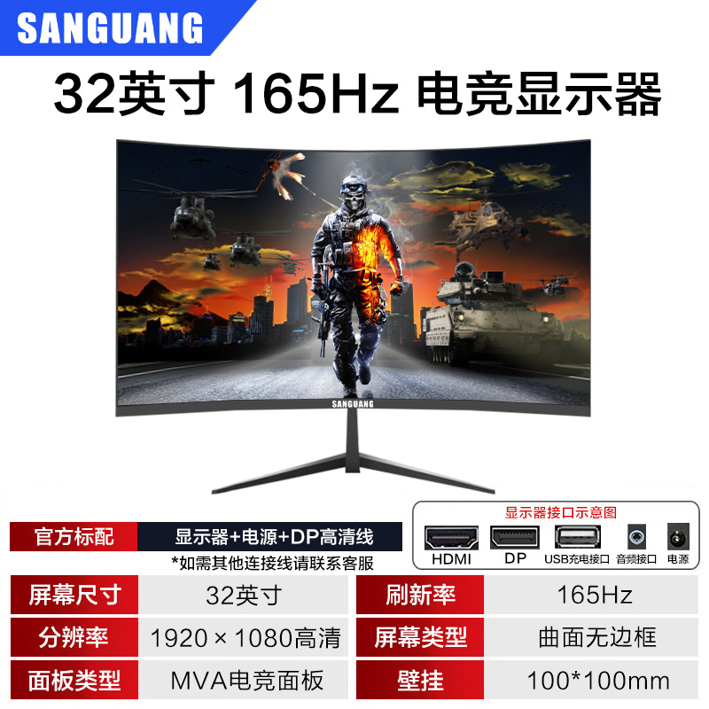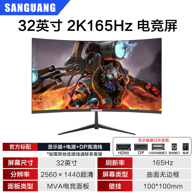 • 32inch 커브드 블랙 [2K 울트라 클리어 +165Hz] 몰입형 e스포츠 공식 표준