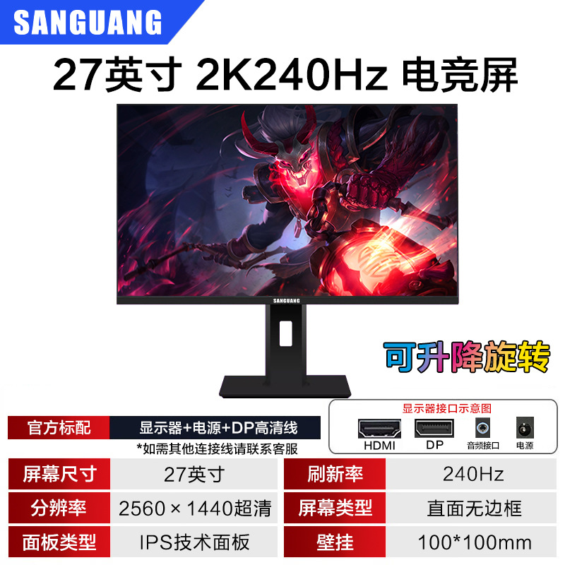 • 27inch 페이스 블랙 [2K 울트라 클리어 + 240Hz] 리프팅 및 회전 베이스 고급 e스포츠 - 공식 표준