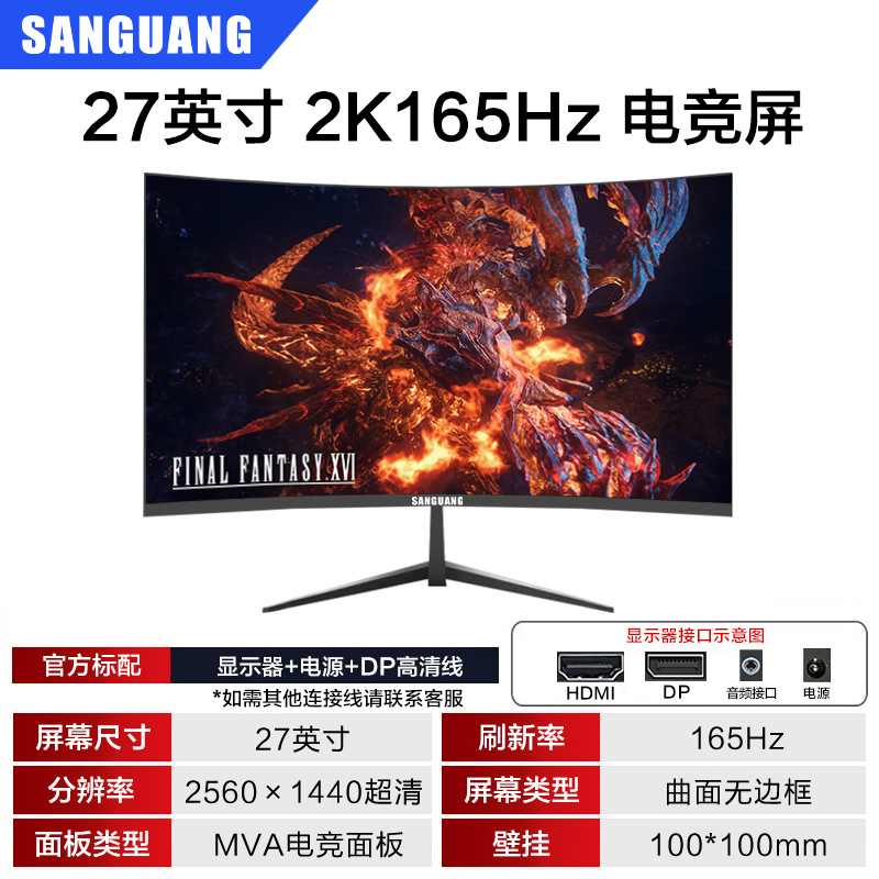 • 27inch 커브드 블랙 [2K 울트라 클리어 +165Hz] 플래그십 게이밍 - 공식 표준