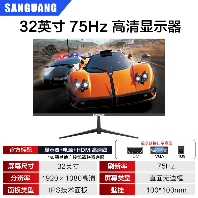 • 32inch 대면 블랙 [Borderless +75Hz] 사무용 대형 화면 - 공식 표준