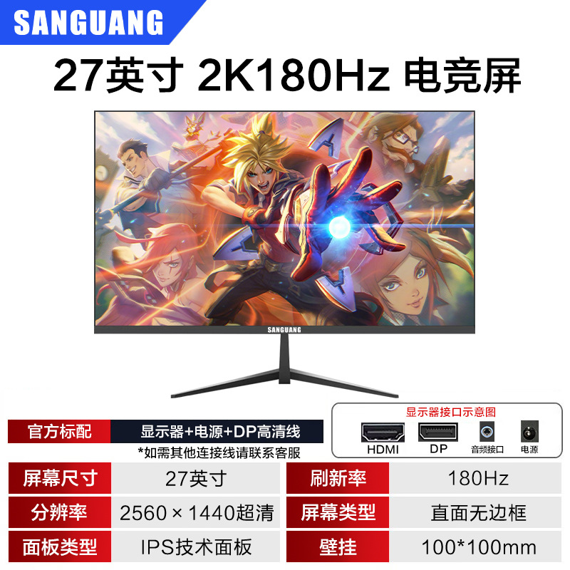 • 27inch 대면 블랙 [2K 울트라 클리어 +180Hz] 고급 e스포츠 공식 표준
