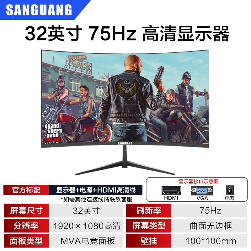 • 32inch 커브드 블랙 [보더리스 +75Hz] 오피스 대형 스크린 - 공식 규격