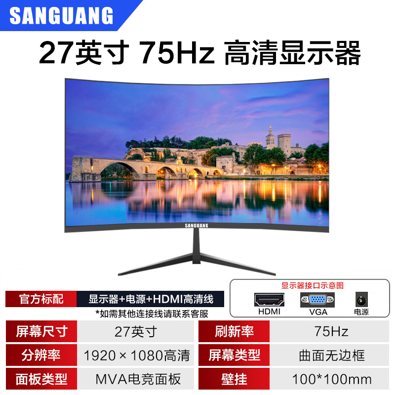 • 27inch 커브드 블랙 [보더리스 +75Hz] 오피스 대형 스크린 - 공식 규격