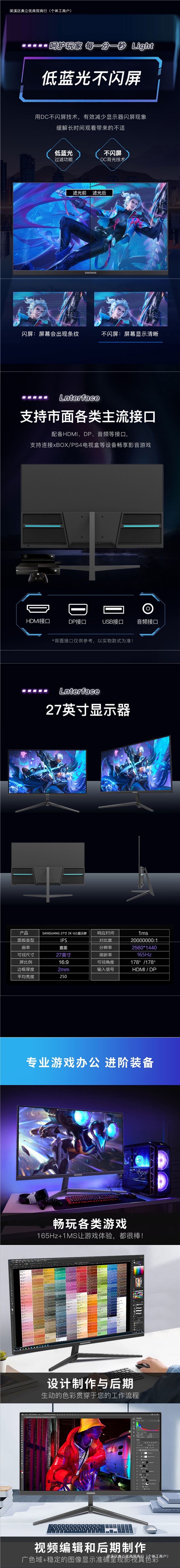 • 27inch 대면 블랙 [e스포츠 모델 +165Hz] 게이밍 대형 스크린 - 공식 표준