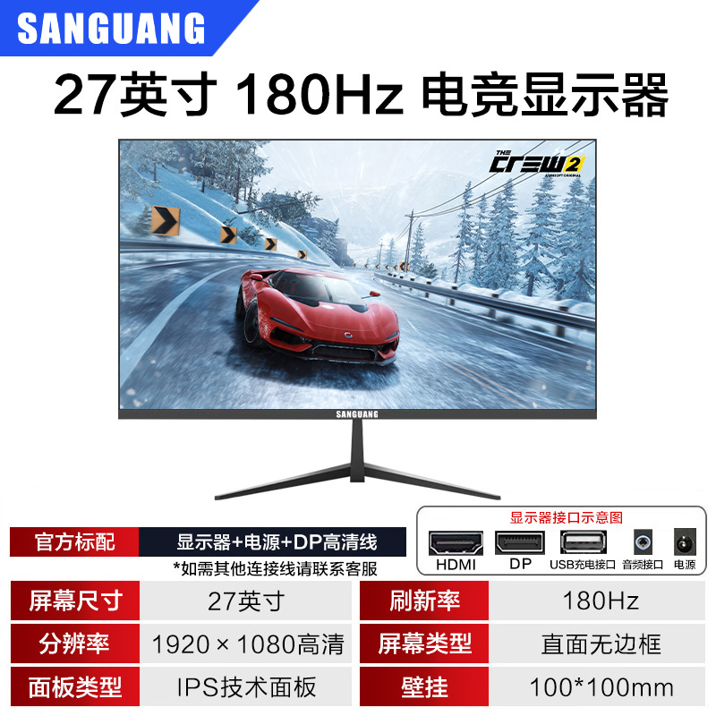 • 27inch 대면 블랙 [e스포츠 모델 +180Hz] 게임용 대형 화면 - 공식 표준 구성