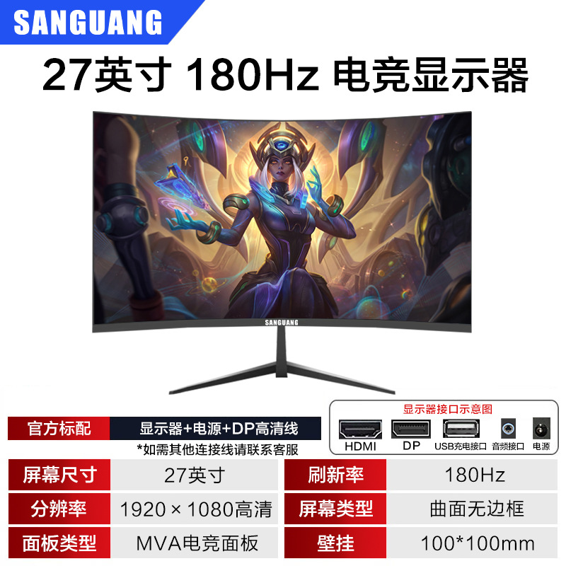 • 27inch 커브드 블랙 [2K 울트라 클리어 +180Hz] 고급 e스포츠 공식 표준