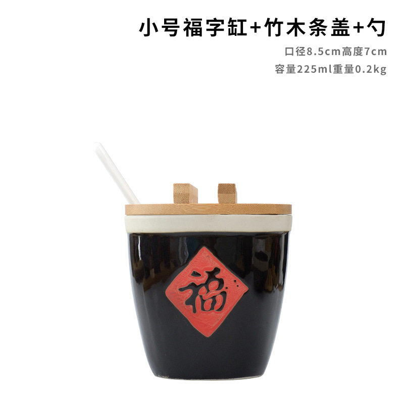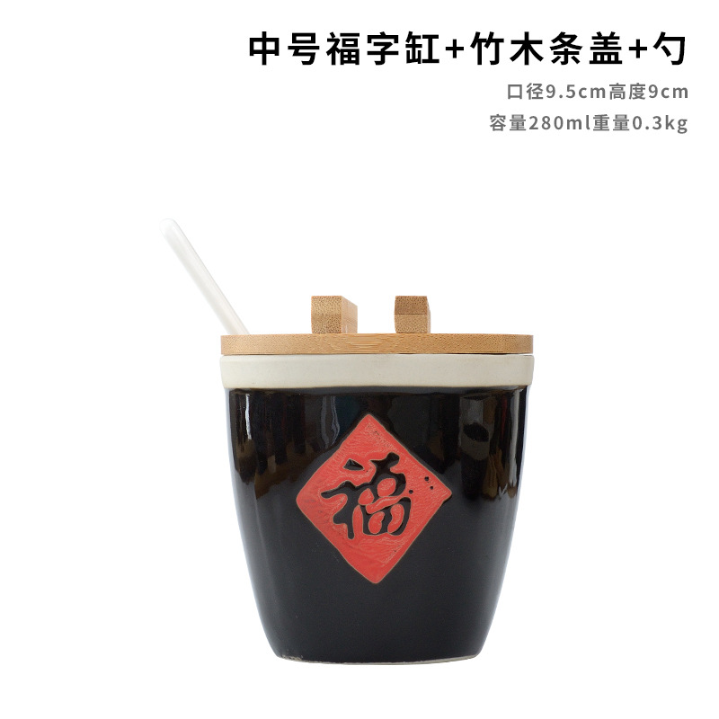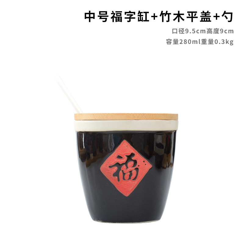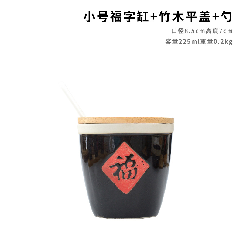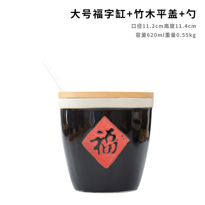 • '푸'라는 글자가 새겨진 대형 항아리 + 대나무 평면 뚜껑 + 숟가락