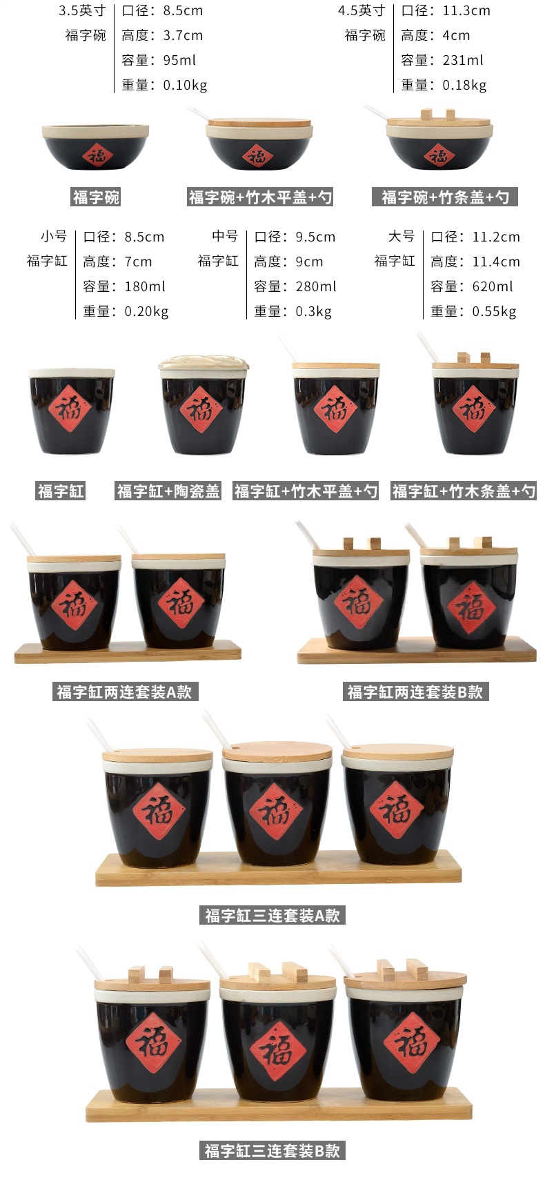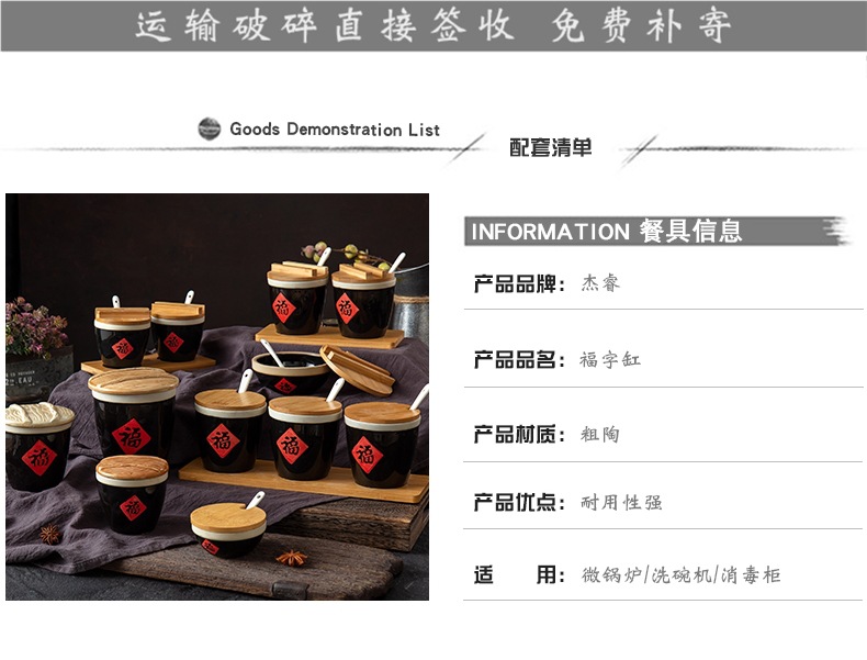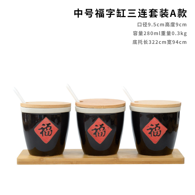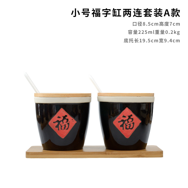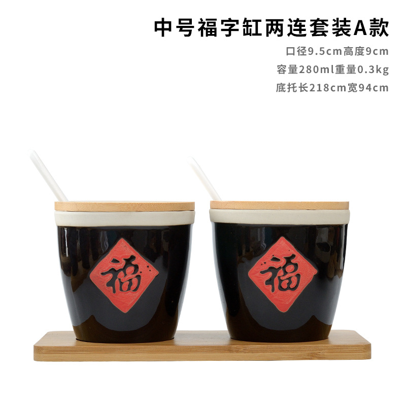 • '푸'라는 글자가 새겨진 대형 항아리 + 대나무 평면 뚜껑 + 숟가락