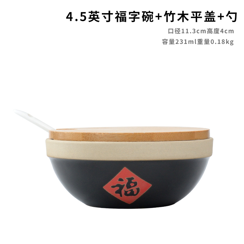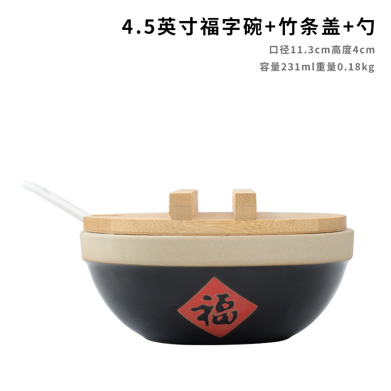 • 4.5inch 축복 그릇 + 대나무 뚜껑 + 숟가락