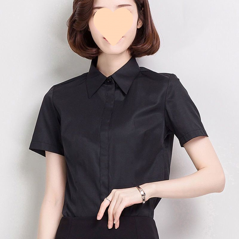 화이트 셔츠 여자 반팔 2025 봄 가을 한국 스타일 새로운 도착 칼라 우아한 비즈니스 착용 툴링 올매치 베이스 셔츠스토어 가기