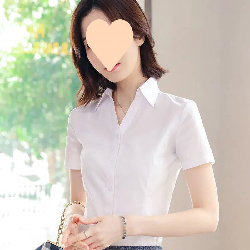 화이트 셔츠 여자 반팔 2025 봄 가을 한국 스타일 새로운 도착 칼라 우아한 비즈니스 착용 툴링 올매치 베이스 셔츠