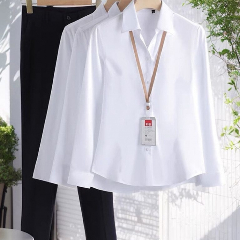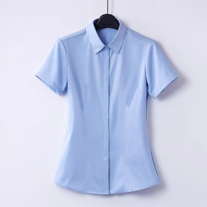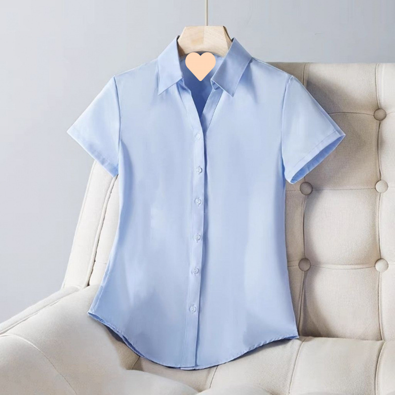 비즈니스 착용 여성용 셔츠 칼라 블루 반팔 패션 작업복 슬림 핏 플러스 사이즈 하이 엔드 원피스 화이트 셔츠스토어 가기