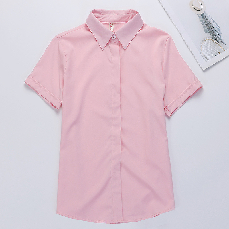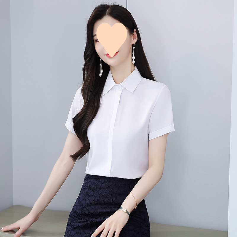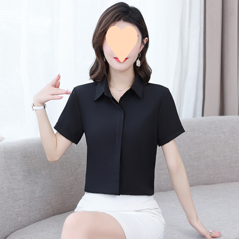 흰색 셔츠 반팔 여성 전문 원피스 최고 봄과 여름 작업 옷 학생의 내베이스 셔츠 작업 옷 파란색과 검은 색스토어 가기