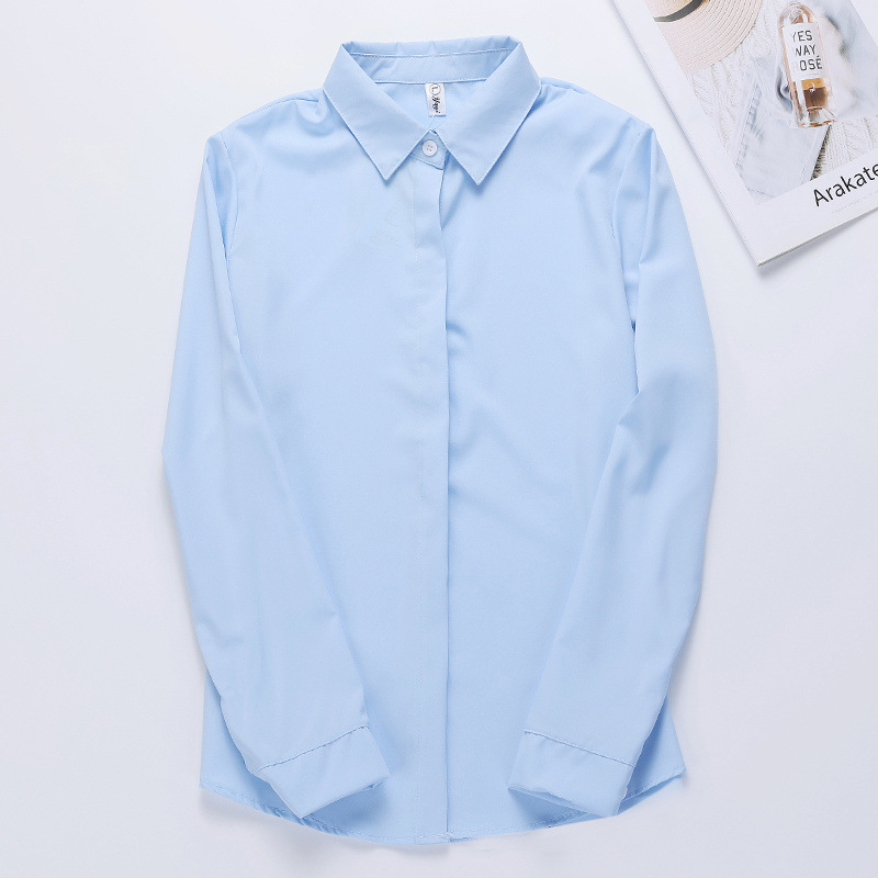 흰색 셔츠 반팔 여성 전문 원피스 최고 봄과 여름 작업 옷 학생의 내베이스 셔츠 작업 옷 파란색과 검은 색