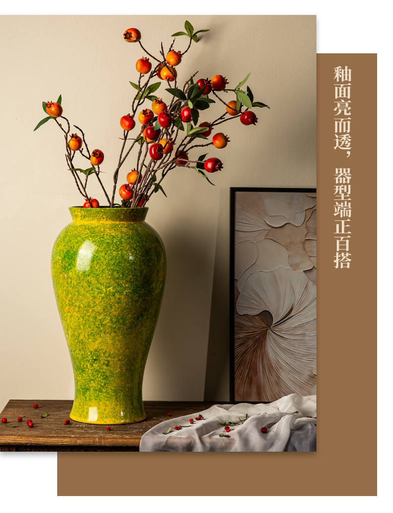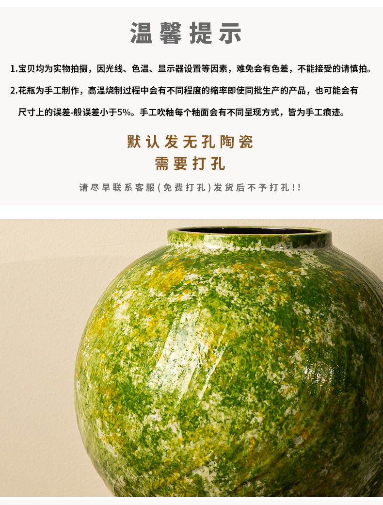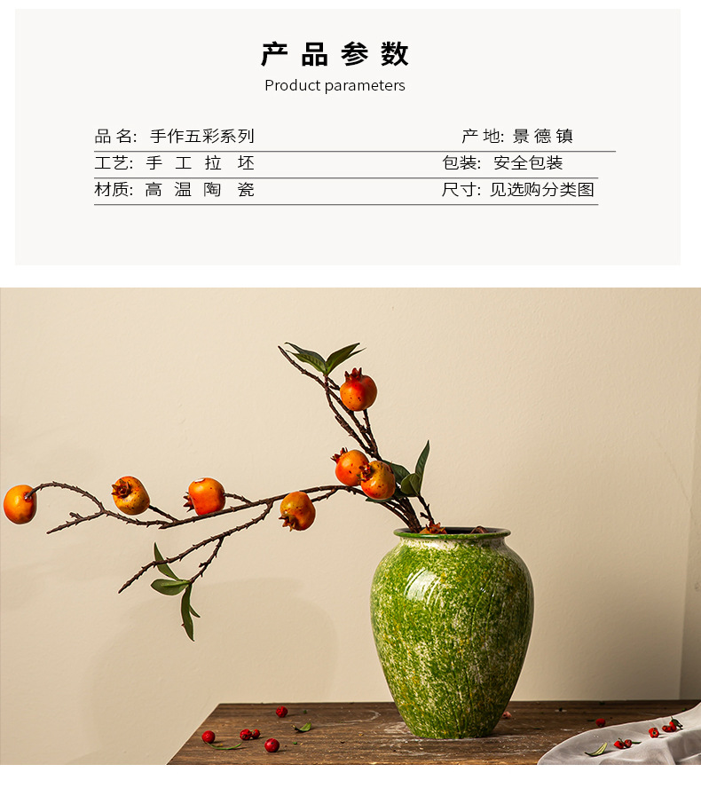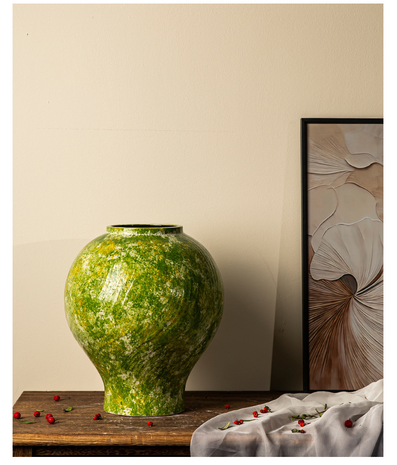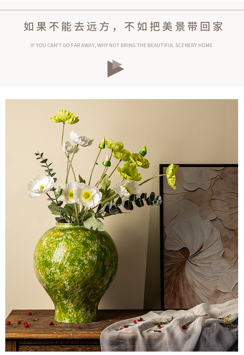 경덕진 세라믹 꽃병 소다 녹색 거친 도자기 꽃 용기 거실 홈 꽃꽂이 장식 복고풍 항아리