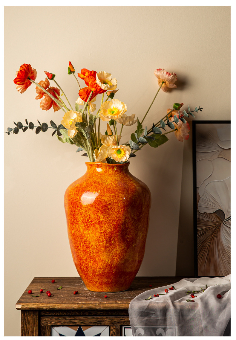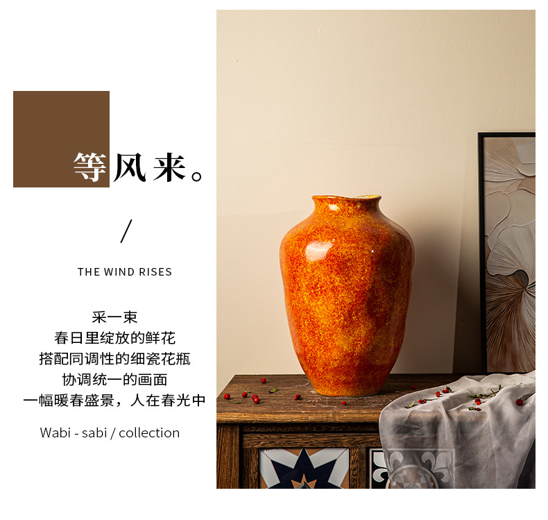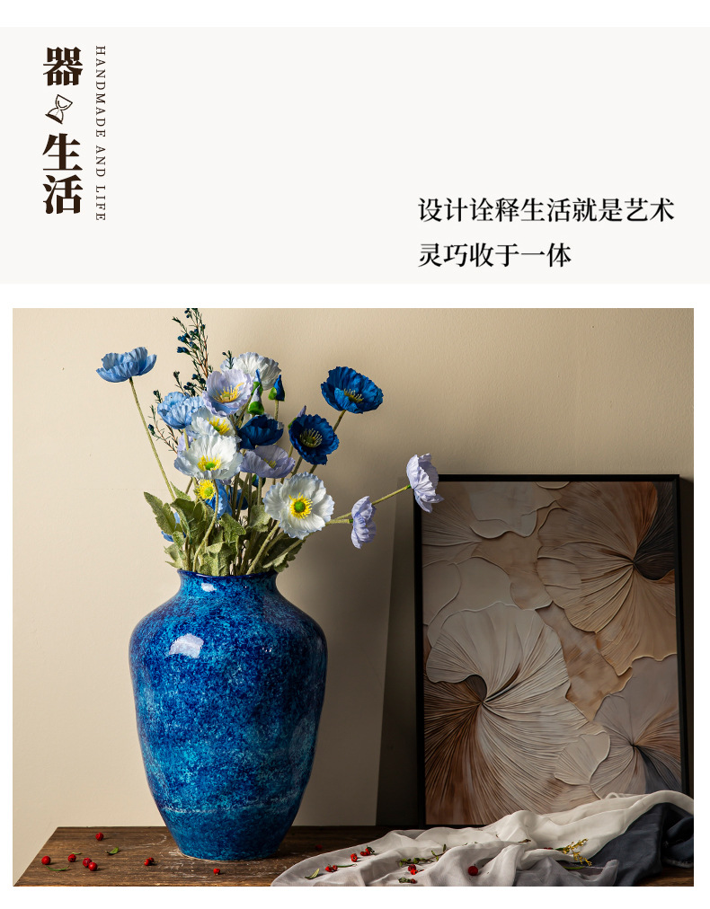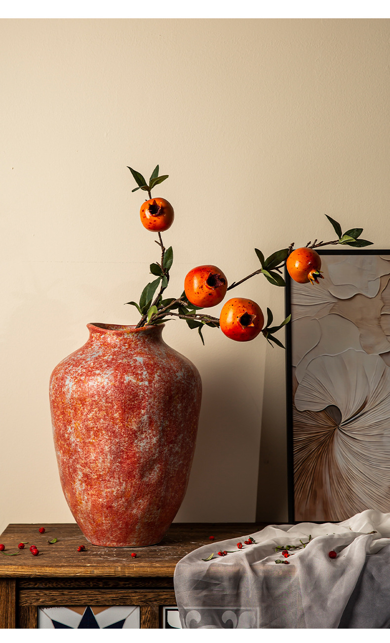 경덕진 세라믹 꽃병 소다 녹색 거친 도자기 꽃 용기 거실 홈 꽃꽂이 장식 복고풍 항아리