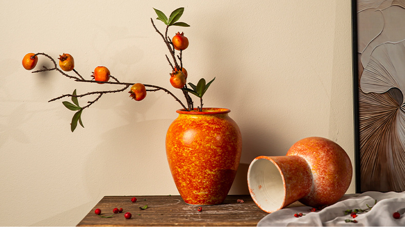 경덕진 세라믹 꽃병 소다 녹색 거친 도자기 꽃 용기 거실 홈 꽃꽂이 장식 복고풍 항아리스토어 가기