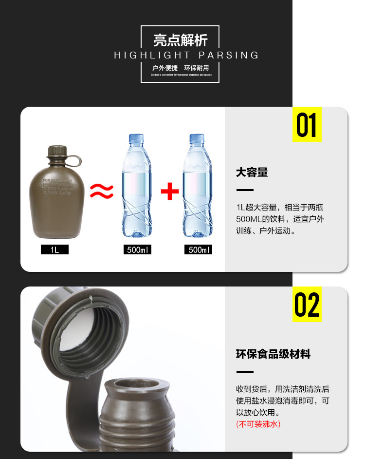 미국식 개별 군인 물병 전술 러시아 PE 여름 캠프 물병 야외 군사 팬 야외 야생 폴리머 물병스토어 가기